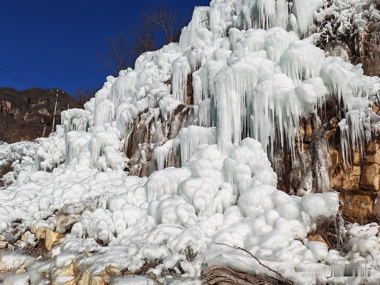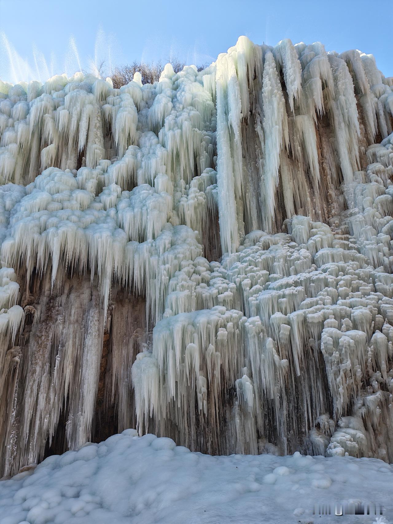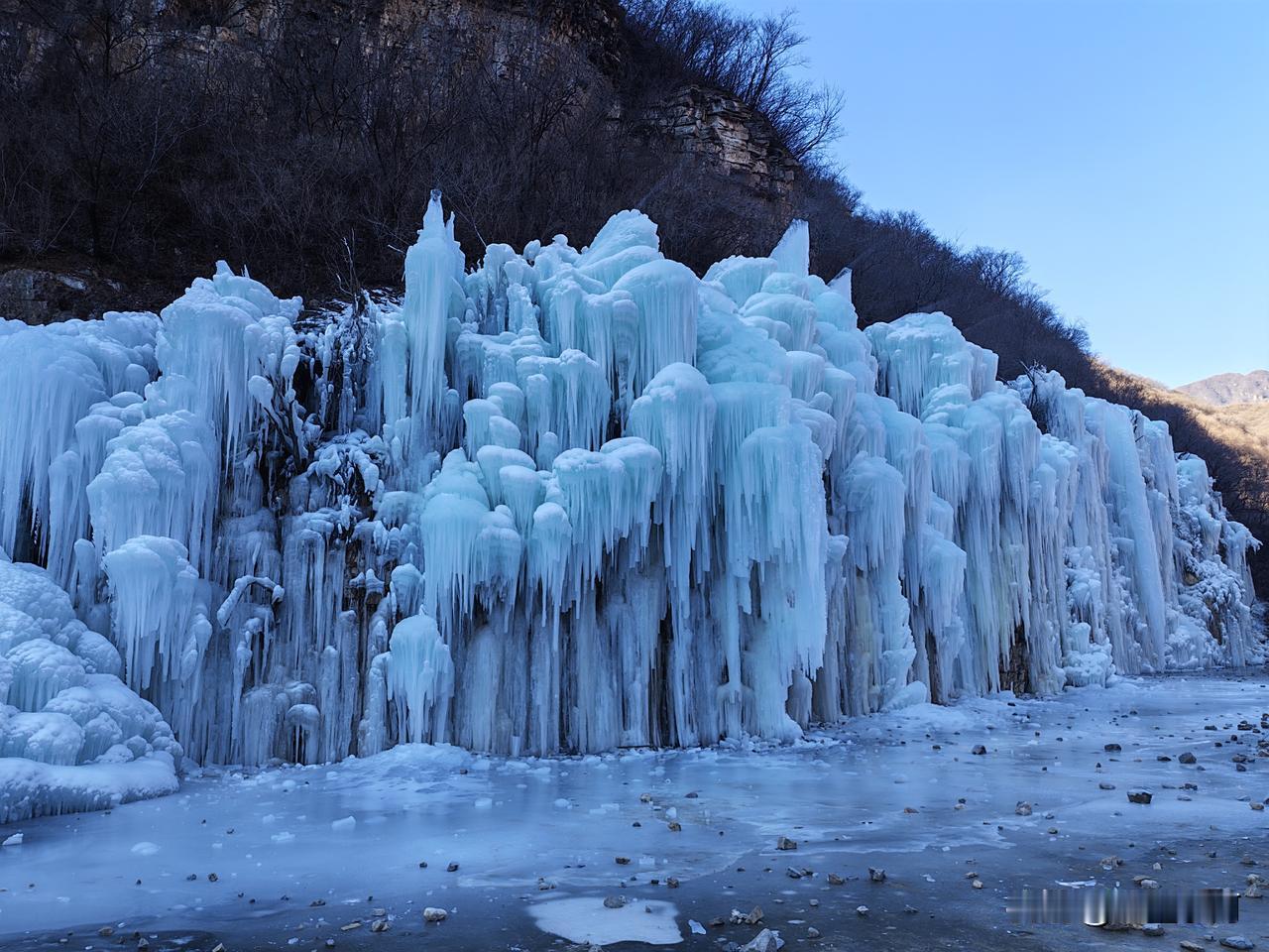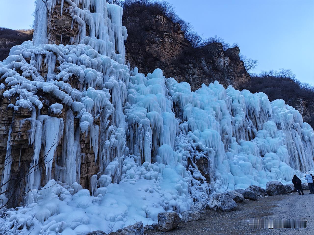 虎峪风景区位于北京市昌平区,冬天的虎峪风景区别有一番风味。今天亲临景区,十分震撼。景区内有8处总面积超2万平方米的冰瀑景观,巨大的冰瀑顺着陡峭山壁垂挂而下,层层叠叠的冰柱、冰棱、冰壁形态各异,在阳光的映照下闪烁着蓝白相间的光芒。今天天气晴好,拍下一组照片,视觉就不一样吧! -