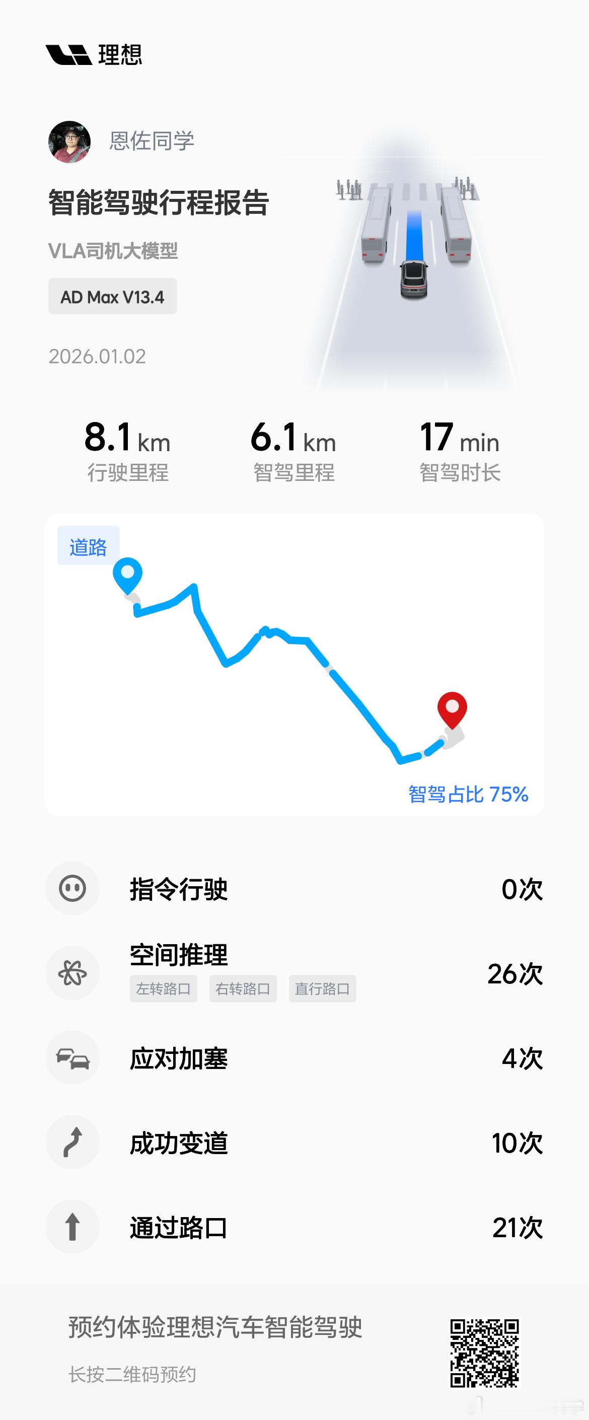最近很多车企都把摸着理想过河当作各自成功的不二法门以至于我也好久没开理想了,趁着元旦假期回味了一把先来说优点- 丝滑 身体还停留在上一个版本刹车很急的记忆里,所以对这个版本的刹车点还是很在意的。在排队等待车流时候,VLA 对前车的识别能力变强了,所以在排队、变道汇入及汇出、应对加塞时候对反应,基本没有急刹的情况,体验很舒适- 日报播报 在车上的时间基本在 30-60 分钟,利用这点时间可以收获主要的新闻信息。当然通过收音机或者ai 搜索在别的车机上也能获取这些信息,但整合好的信息无论是信息获取的效率还是体验都是很好的再来说说缺点- 车道偏右 [裂開]这个问题从理想早期的版本就一直存在。虽然系统对车道位置是相对居中的,但是对于人类驾驶员来说,因为观测左侧更加方便,所以驾校一直教的是贴左侧行驶,给留下更多的观察空间。之前问过很多媒体人对现在理想VLA 的感受,很多人的私下反馈都是离鸿蒙ADS 还有不小的距离。我认可这种讲法,同时我觉得鸿蒙ADS4.0 是更像一个刚拿驾照的司机,处在获得驾照的兴奋劲里,且很会在交规里找通行效率优先和合法合规下的灰色地带理想VLA 的行为逻辑更像一个受过许多模型训练的机器人,在规则里能够从从容容,游刃有余。一旦遇到规则外的情况,还是会有匆匆忙忙的紧迫感大v聊车鸿蒙智行理想汽车