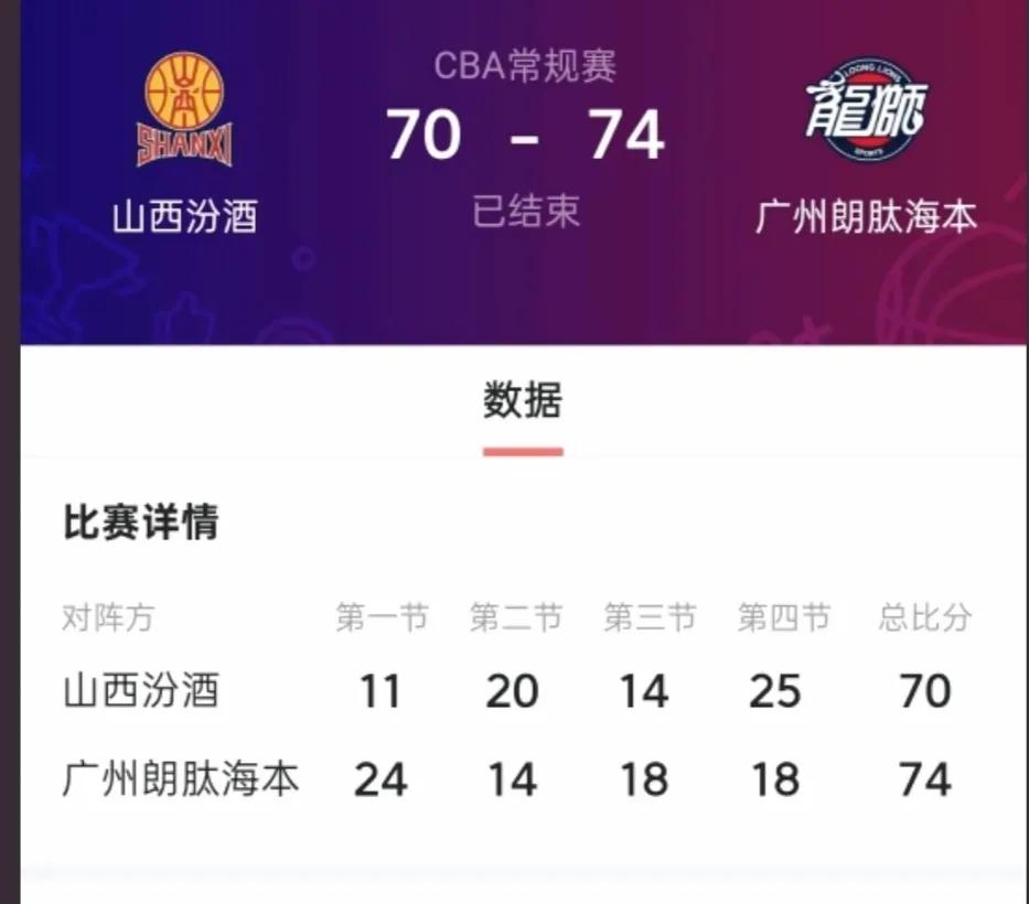 广州队客场74-70击败山西,在这个魔鬼主场能带走胜利,全身而退,非常的了不起。
