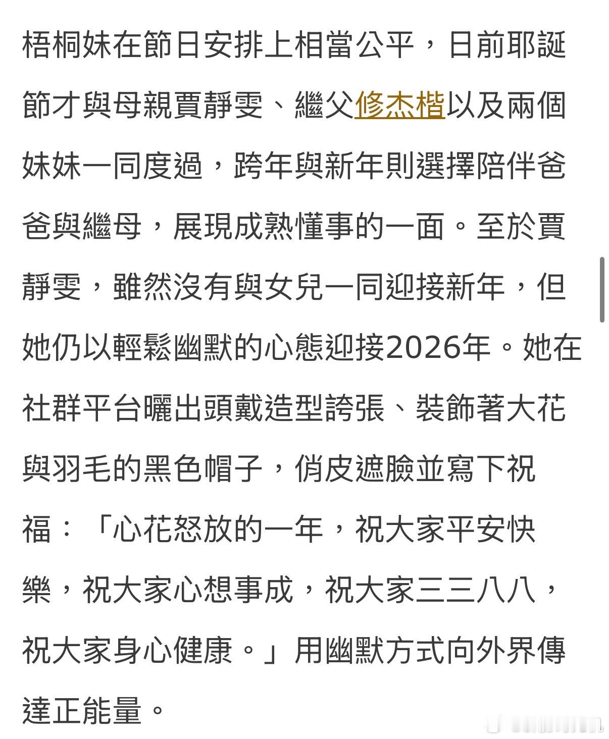 端水大师梧桐妹,圣诞节跟贾静雯、修杰楷、咘咘、波妞一起过,新年和孙志浩、林若亚一起