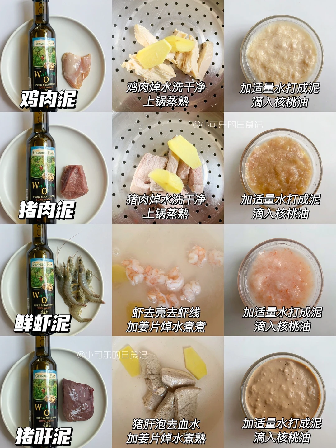 香菇泥+牛肉泥+生菜泥+米粉+核桃油