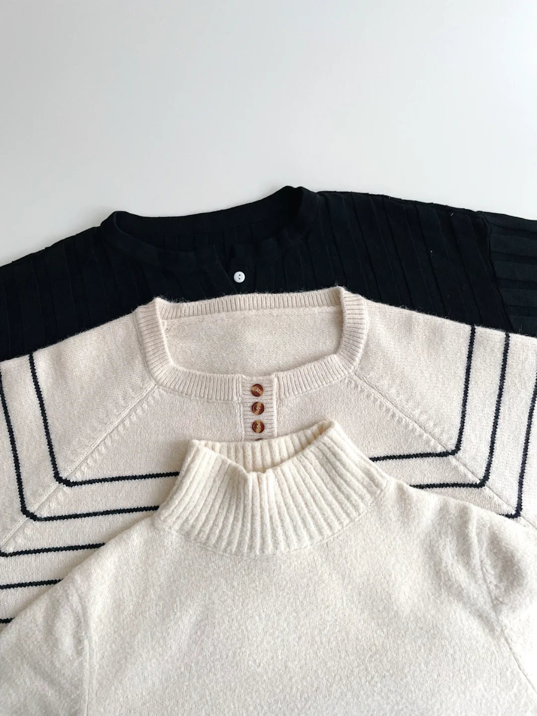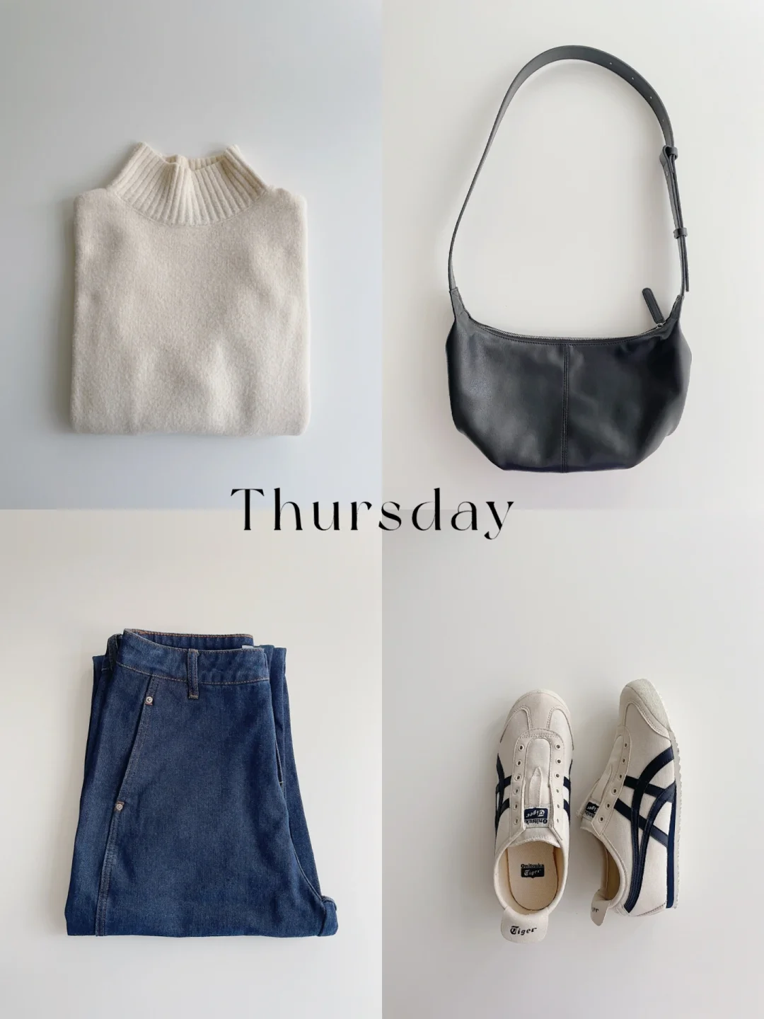 ▪️周三:黑色竖纹针织衫+白色牛仔裤