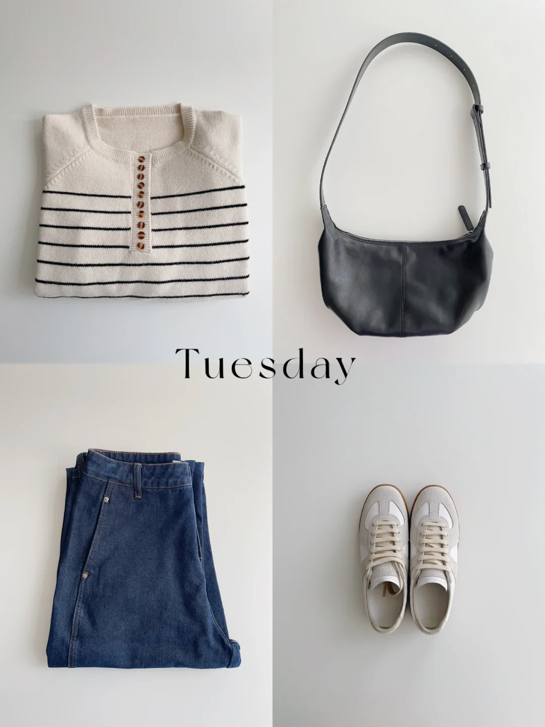 ▪️周二:条纹毛衣+宽松牛仔裤
