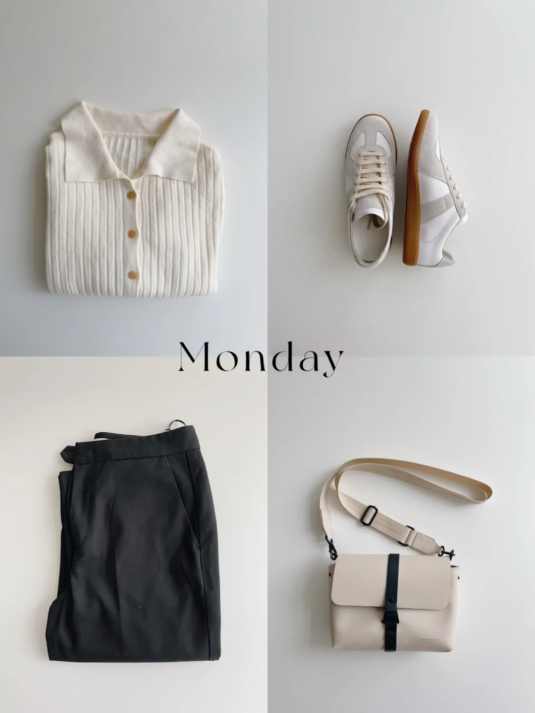 ▪️周一:白色针织衫+黑色西裤