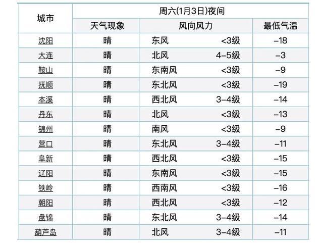 朝阳4℃大连3℃葫芦岛2℃锦州1℃