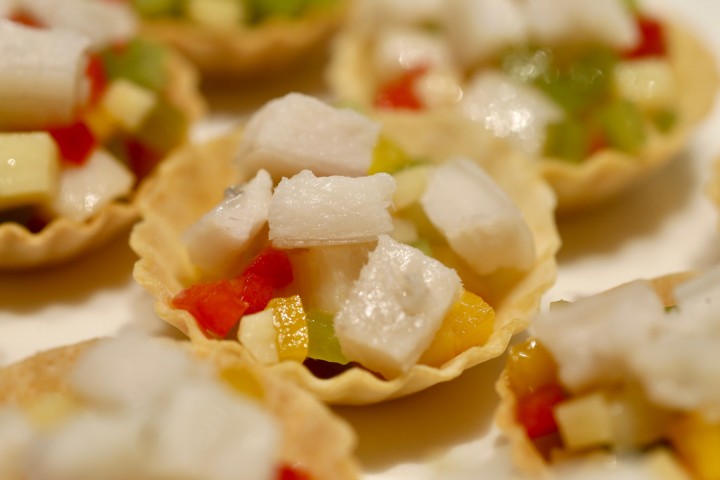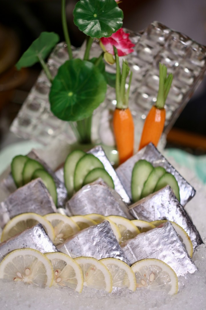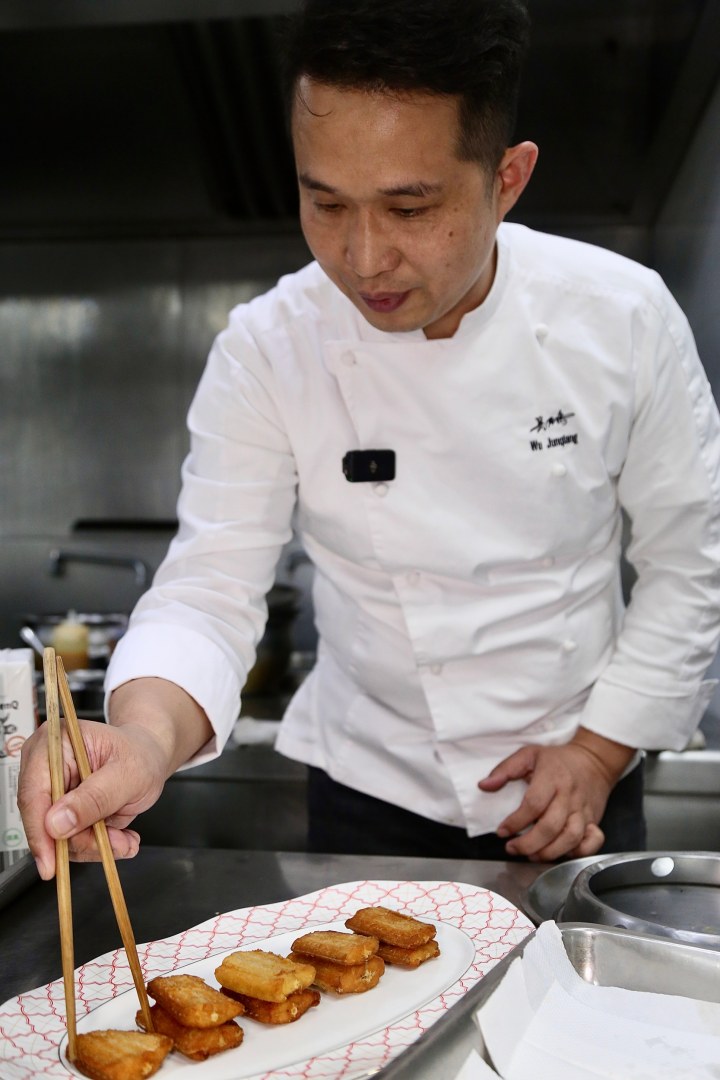 如果说“米鱼十三吃”是以多种烹饪手法来演绎台州与温州菜的味与形——事实上这两个菜系之间有着密不可分的关系,手法与口味都比较接近,那么到“东海·冬暖银带宴”,就是吴君强对更多创新的尝试。
