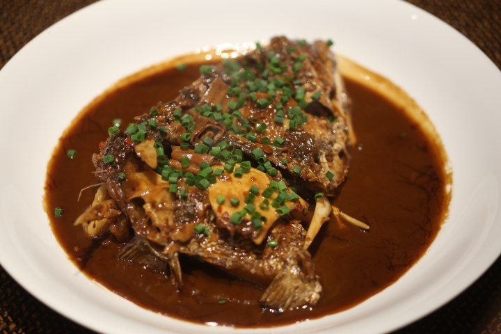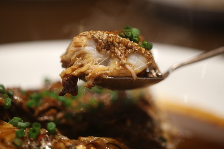 同时,他在葱香慢煨绝味米鱼头这道菜上,用了乐清那边最老的烧法来处理,先将鱼头煎一下,然后浓油赤酱,各种调料用得足,比我们熟悉的家烧浓郁多了。