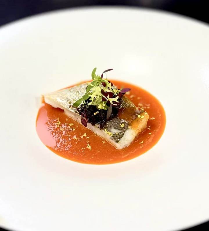 铁定鲜的招牌菜低温美国牛肋骨,这就是经典西餐的烹饪方式,经48小时真空低温慢煮,最大限度保留美国牛肋骨的鲜嫩与营养。装在一个木盒子里端上来,带着些许木香,牛肉鲜嫩多汁。在2025年杭州“金桂花”颁奖晚宴上,吴君强现场制作的“清蒸黄鱼配甜酸凤梨红椒汁”,也是以西餐手法演绎浙江人喜闻乐见的黄鱼。