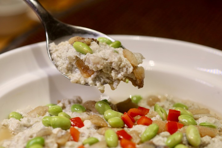 云腴带鱼蒸毛豆臭豆腐对杭州人极其友好,我们觉得它属于特别定制款,毕竟台州人开的饭店,基本上臭豆腐都是不进门的。此处臭豆腐才是主角,带鱼切成小小块,和毛豆一起帮衬着。