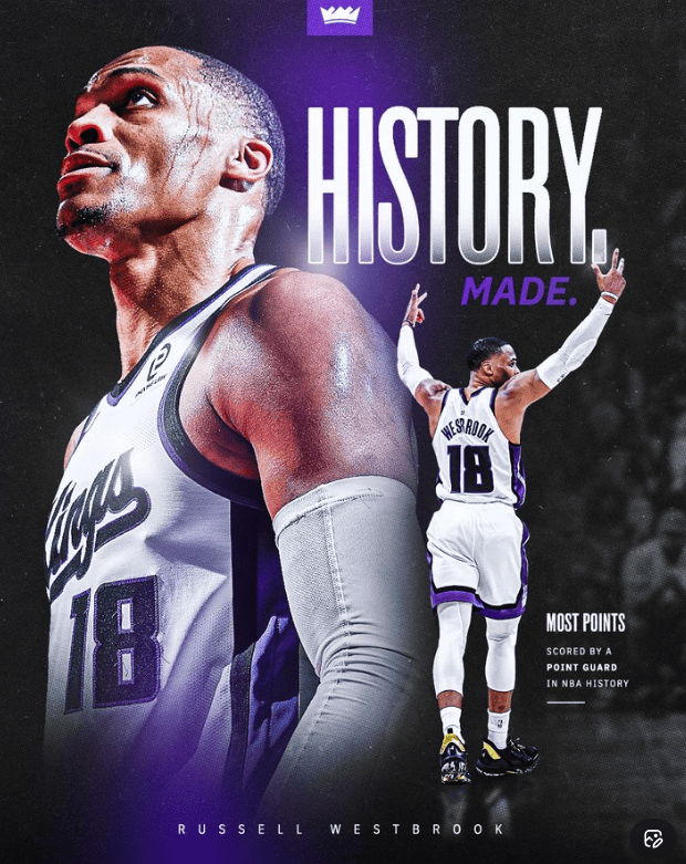 赛后,国王官方晒出了专属海报,为威少祝贺。