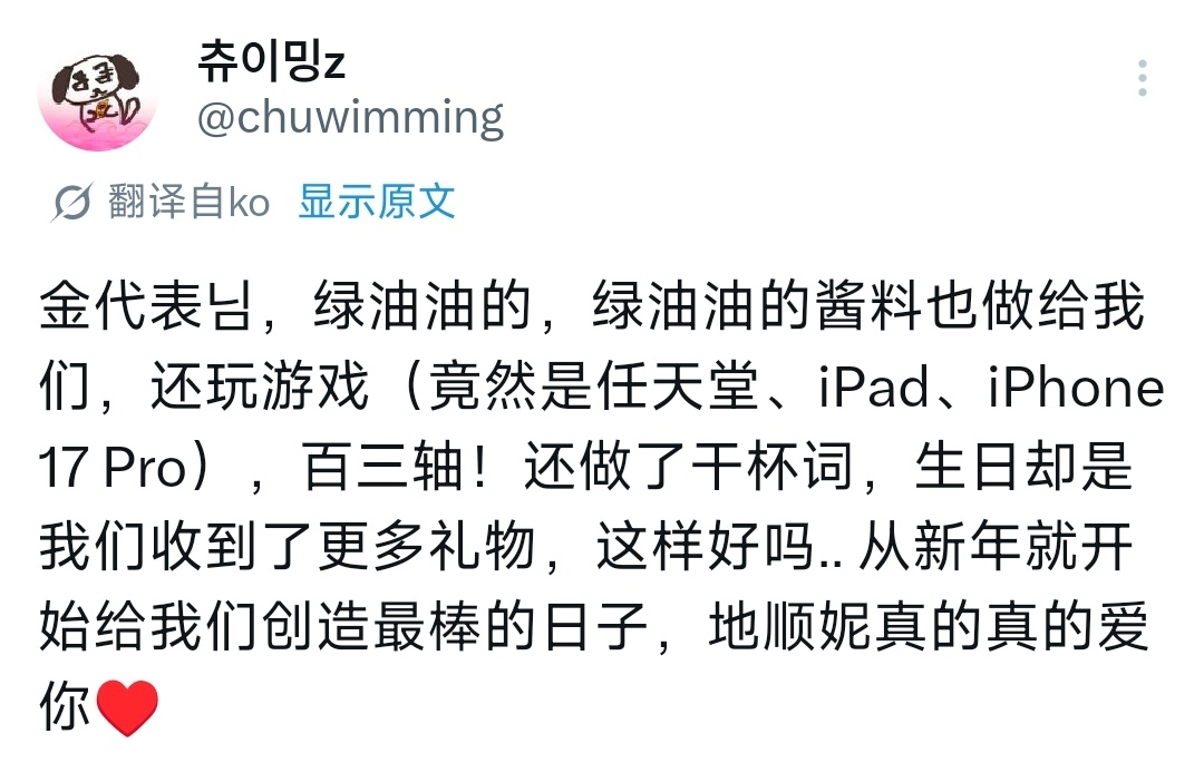 金智秀请103位粉丝吃火锅260103 Jisoo海里捞生日派对repo✨- 现场抽选5位粉丝送了switch,iPad,iPhone17pm- 智秀送给了粉丝们三袋子礼物🎁- 亲手给粉丝调了一碗蘸料- 智秀退场后因为想和粉丝们合照又回来了- 当然火锅菜品更是无限续加😋天啊请吃饭还送礼物的漂亮姐姐!!!!她的爱太拿得出手了😭😭😭(不羡慕😎)