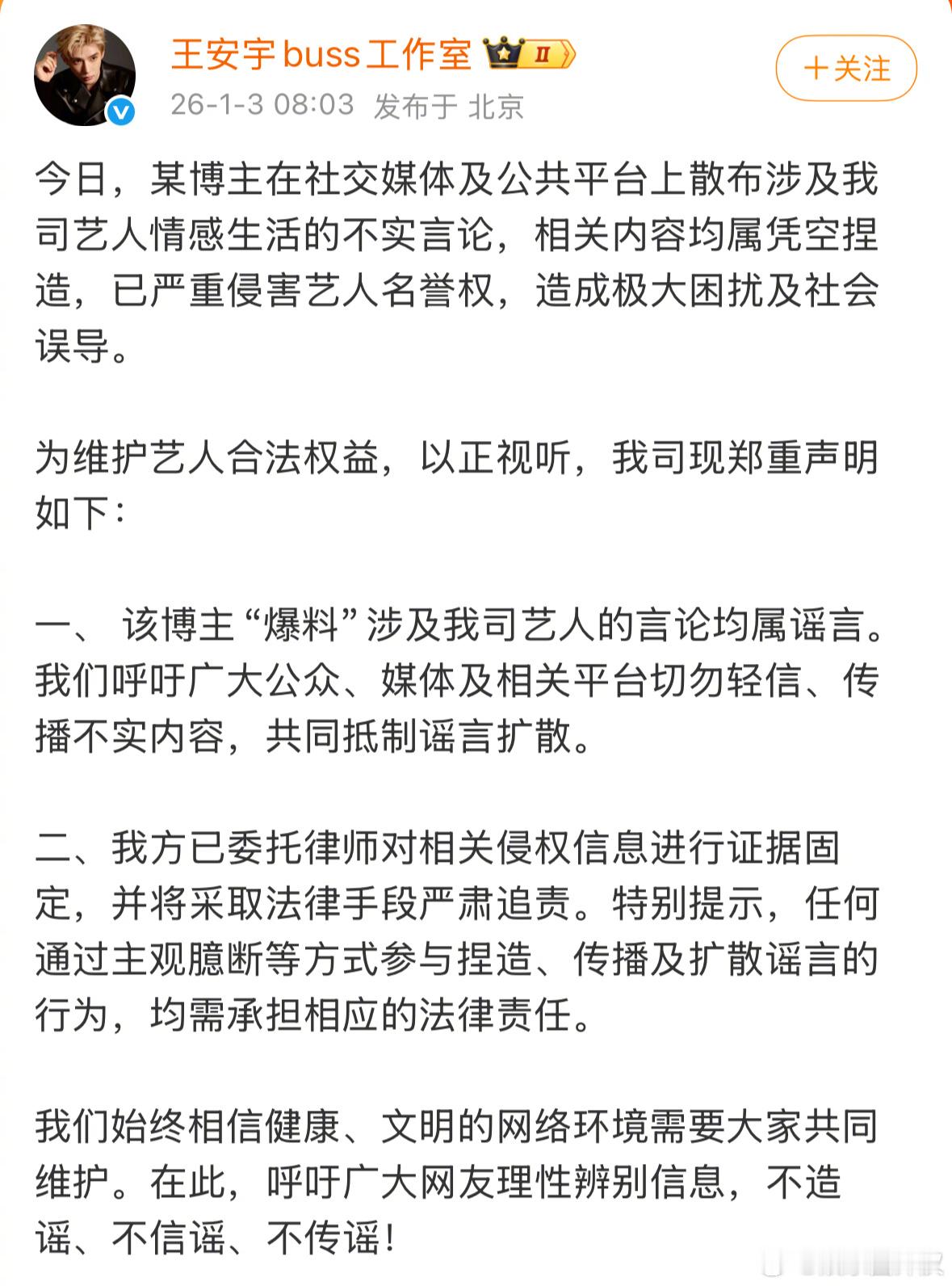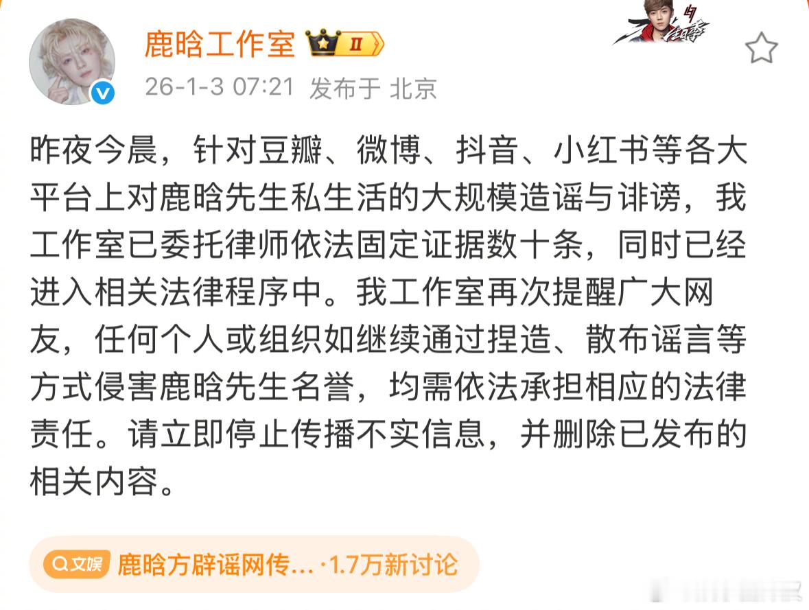 鹿晗方辟谣网传合照爆出和这么多艺人都有牵扯,觉得自己是万人迷吗….林更新工作室真的好好笑哈哈哈哈哈哈哈,不知道是谁在信网络造谣的成本太低了导致这种人什么话都敢往外说…