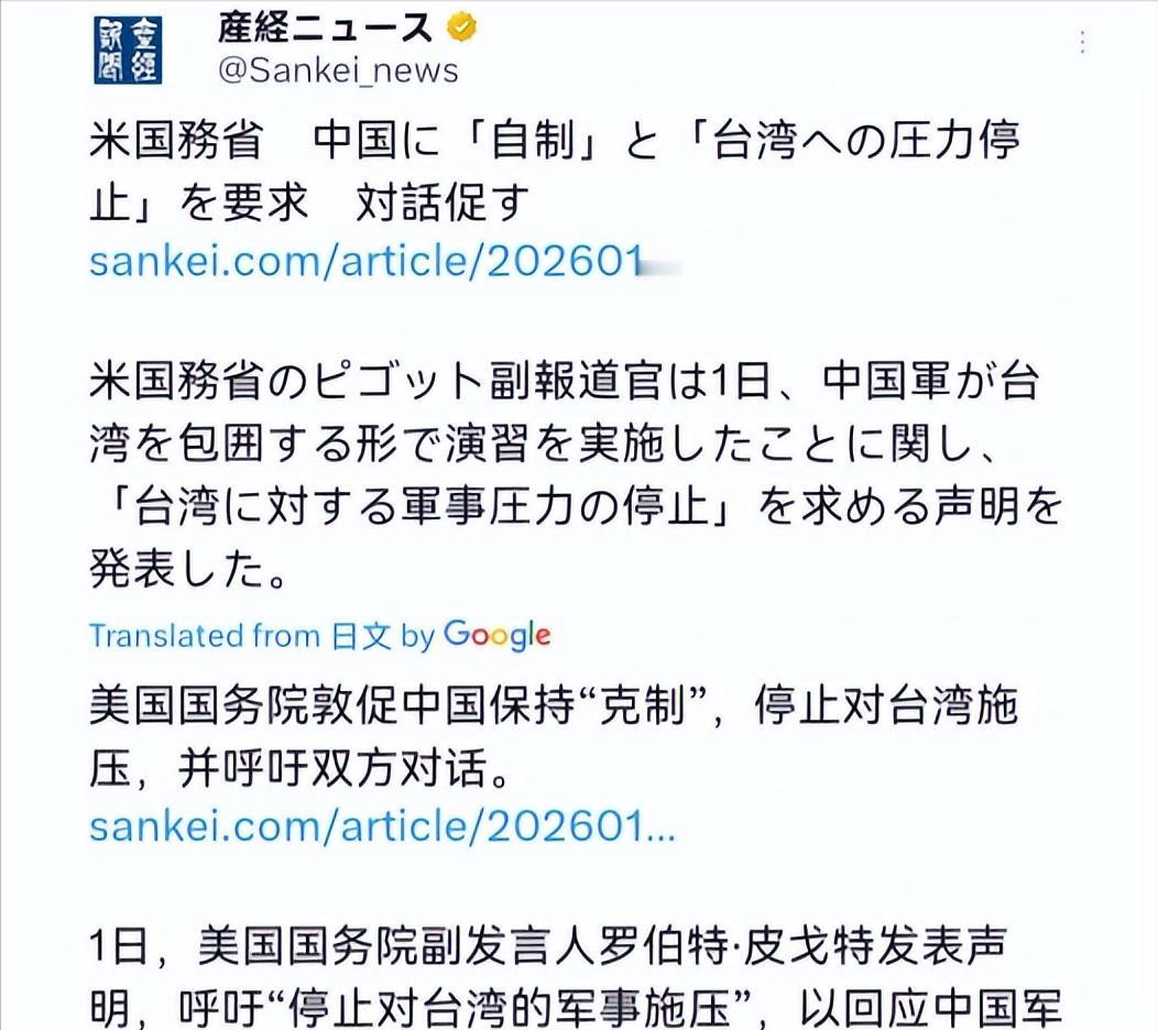 沉默三天之后,美国终于出来表态了!1月2日,根据日媒报道,对于我们举行的军演,美国作出正式表态。 大家都知道,就在2025年的12月29日,中国人民解放军东部战区毫无征兆地拉开了“正义使命-2025”环台岛军事演习的序幕。 这次演习的阵仗可不小,海空兵力齐出,直接给围了个水泄不通。按理说,按照美国人以往的那个急性子,这边炮声一响,那边白宫的谴责声明通常是立马就到的。 可这次呢?整整三天,美国方面竟然一点动静都没有,安静得让人觉得诡异。直到2026年的1月2日,美国国务院才终于打破了沉默。 根据日媒的报道,美国国务院副发言人罗伯特·皮戈特出面做了一个正式表态。这迟来的表态说了些什么呢?还是那些陈词滥调的老一套。 皮戈特声称,美国关注到了中国在台湾周边的联合军事演习,并且呼吁中国不要进行军事施压,要“保持克制”。 他还假惺惺地表示,美国反对任何单方面改变现状的行为,支持台海和平稳定,认为中国的军演是“不必要地加剧紧张局势”。 听听,这话说的多好听啊!仿佛他们才是和平的守护者,而我们是在无理取闹一样。但明眼人一下子就能听出这其中的不对劲。 为什么美国这次的反应弧这么长?为什么在解放军演习开始后的前72小时里,华盛顿选择了集体失声?这其中的门道,可就深了去了。 说白了,这三天的沉默,恰恰暴露了美国政府内部的极度纠结和战略困境。现在的美国,正处在一个进退维谷的尴尬境地。 一方面,他们刚刚在半个月前,批准了一笔价值高达111亿美元的对台军售案,这可是创下了历史新高的记录啊!里面甚至包括了“海马斯”火箭炮这种进攻性极强的武器。 拿了钱,卖了货,现在“客户”挨揍了,美国要是连个屁都不放,以后还怎么在盟友圈子里混?日本看着呢,澳大利亚也看着呢,这“带头大哥”的面子往哪搁? 但另一方面,美国人心里也虚啊!他们比谁都清楚,解放军这次“正义使命-2025”演习的含金量有多高。 我们的军舰和战机直接切断了台岛北部与日本方向的联系通道,这就意味着,一旦真的有事,美国和日本想要介入,那简直是痴人说梦。 面对这样强大的军事威慑力,如果话说得太重,真的激怒了中国,导致局势失控,美国有那个能力下场吗? 所以,我们才看到了这出“迟到三天”的戏码。最后憋出来的这份声明,其实就是一个典型的“和稀泥”产物。 既要对盟友和岛内势力有个交代,表示“我还在支持你们”,又不敢用词太激烈,生怕真的惹火烧身。 更让人觉得讽刺的是,皮戈特在声明里口口声声说要进行“有意义的对话”,还呼吁中国不要单方面改变现状。这简直就是贼喊捉贼! 美国人所谓的“有意义的对话”,本质上就是一种强盗逻辑。这种霸道逻辑,放在一百年前或许行得通,但在2026年的今天,早就不好使了! 而且,大家有没有发现一个细节?这次美国人的表态里,虽然嘴上强硬,但底气明显不足。他们只是呼吁“克制”,却只字不提如果中国不克制,美国会怎么样。 这说明什么?说明美国人已经默认了一个事实:在台海这片区域,随着中国军事力量的飞速增长,美军已经失去了绝对的掌控力。他们知道,真要硬碰硬,他们占不到半点便宜。 特别是这次演习的时间点选得也很微妙,就在美国宣布天价军售之后不久。这就是在明明白白地告诉华盛顿:你卖多少武器,我们就搞多大阵仗的演习;你敢切香肠,我们就敢掀桌子。 美国想通过军售来给“台独”势力打气,我们就用实际行动把这股气给它泄得干干净净。这111亿美元的武器,在解放军的立体封锁体系面前,不过是一堆废铜烂铁罢了。 至于美国提到的所谓“反对单方面改变现状”,这更是一个笑话。台湾问题的现状是什么?现状就是两岸同属一个中国! 任何试图把台湾从中国分裂出去的行为,才是对现状的真正破坏。解放军的演习,恰恰是在维护台海的真正和平,是在维护国家的主权和领土完整。