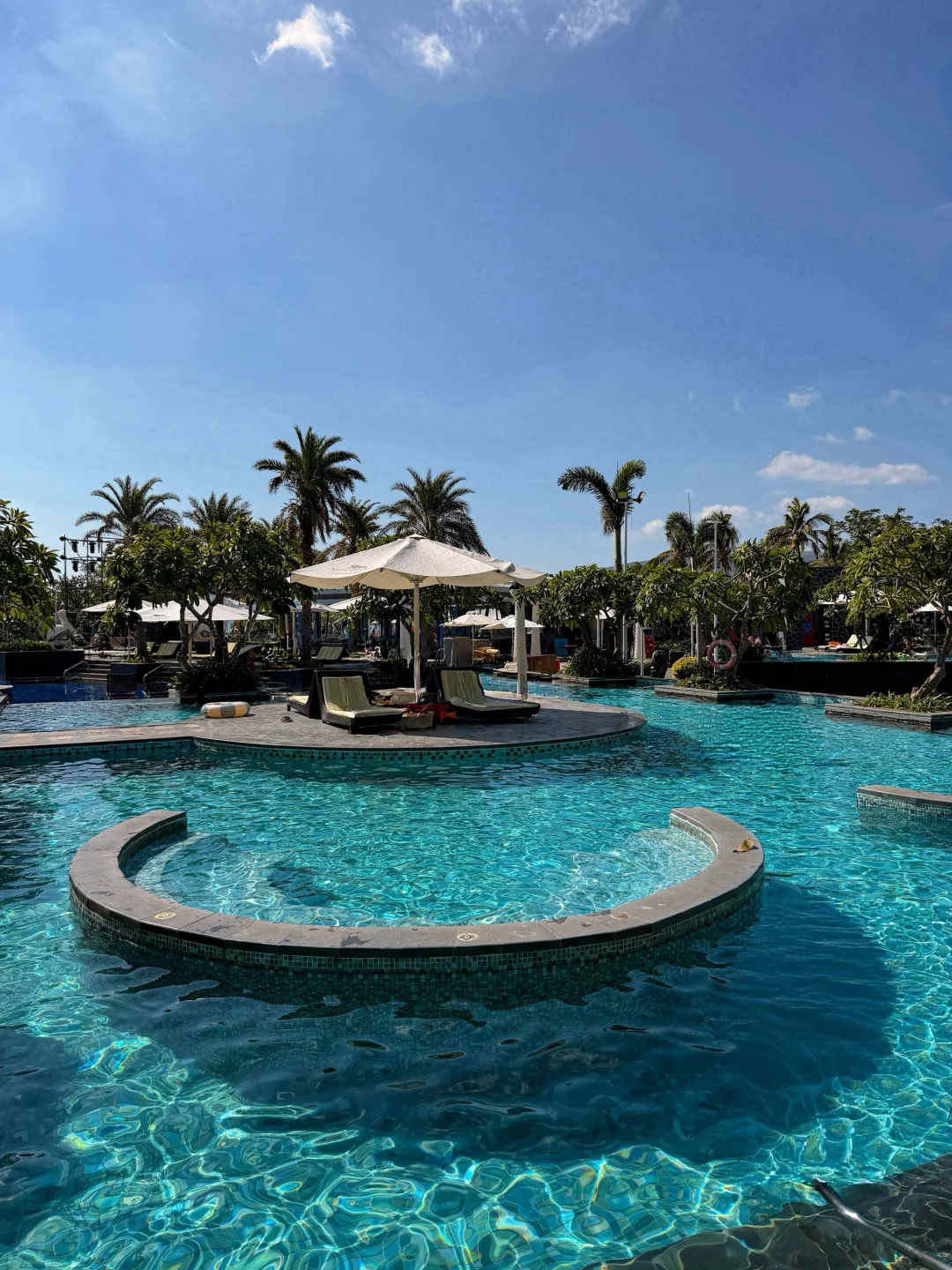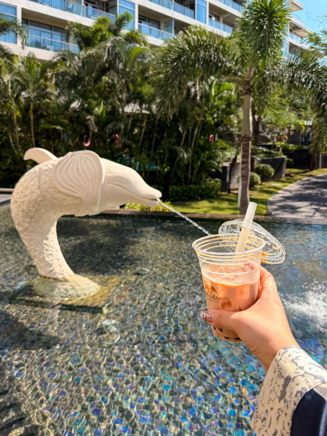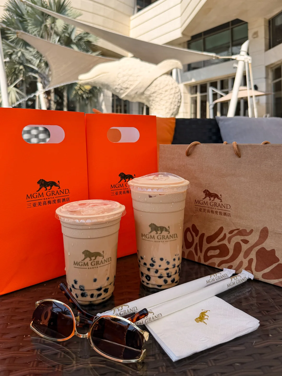 来三亚美高梅就冲这杯珍珠奶茶🧋 结果被度假氛围狠狠拿捏~ 点的500ml小杯无糖去冰,本以为能清爽喝,没想到焦糖珍珠自带甜感☕️喝着还是有点甜腻感 服务员说珍珠本身就加了焦糖调味,难怪无糖也逃不过甜腻💰不过二三十的价格不算贵,700ml大杯适合闺蜜分着喝,猎奇尝鲜完全OK~ 重点是美高梅的度假感真的绝了🌴喝完奶茶去酒店私属沙滩闲逛,细软白沙滩配蔚蓝大海,随手拍都是无滤镜大片🌊 躺回泳池边的藤编躺椅上,吹着带椰香的风,看着阳光洒在泳池泛起的粼粼波光,什么都不用想的松弛感,才是海岛度假的真谛啊~