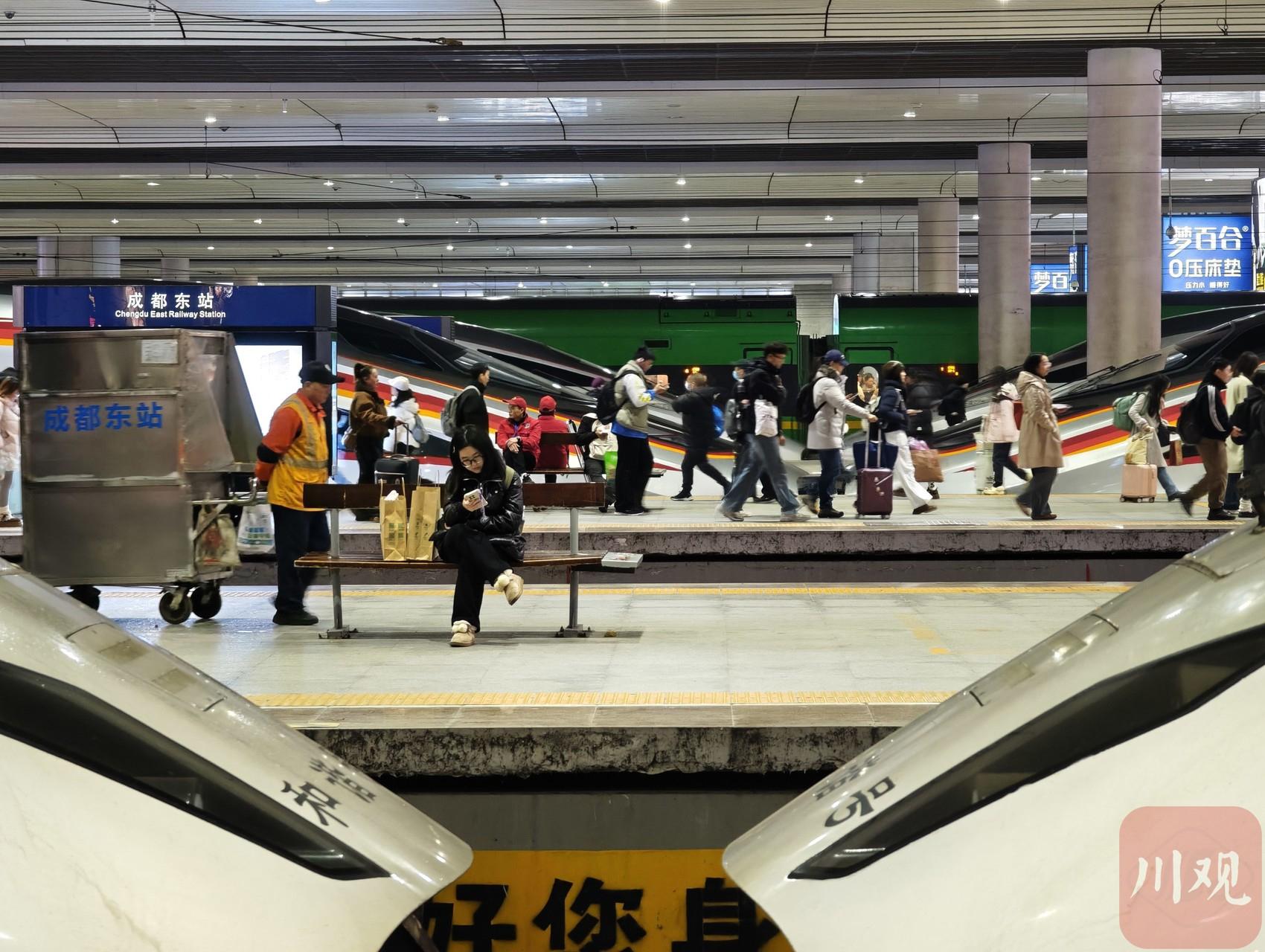 元旦假期最后一天,成都东站预计发送旅客26.1万人次,到达旅客26.2万人次。
