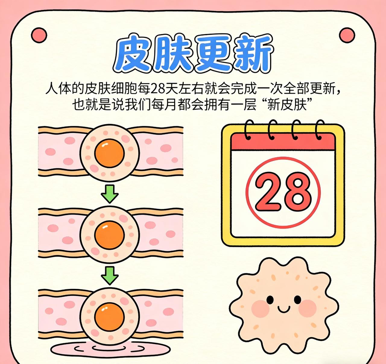 人体趣味冷知识清单 1. 嗅觉记忆:人的鼻子能记住大约5万种不同的气味,和狗的嗅觉记忆种类相差不大,只是灵敏度稍弱。 2. 指甲生长:手指甲生长速度约为每月3.47毫米,脚趾甲的生长速度仅为手指甲的1/3。 3. 人体最硬部位:不是骨头,而是牙齿的牙釉质,硬度接近水晶。 4. 独特舌纹:每个人的舌纹都是独一无二的,和指纹一样可作为身份识别依据。 5. 肌肉调动:成年人身体约有600多块肌肉,微笑调动17块,皱眉却要用到43块。 6. 眨眼频率:人平均每分钟眨眼15-20次,每次眨眼仅持续约0.3秒,一天累计眨眼超1万次。 7. 骨骼数量:成年人有206块骨骼,而新生儿的骨骼数量多达300多块,部分骨骼会随着生长发育逐渐融合。 8. 最强肌肉:按比例计算,人体最强壮的肌肉是咬肌,它能产生相当于自身重量数倍的咬合力。 9. 血管长度:人体全身的血管连接起来,总长度约为10万公里,能绕地球赤道两圈半。 10. 皮肤更新:人体的皮肤细胞每28天左右就会完成一次全部更新,也就是说我们每月都会拥有一层“新皮肤”。