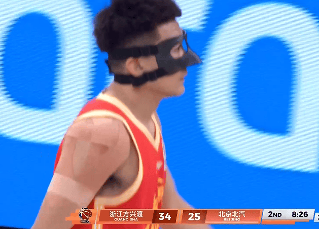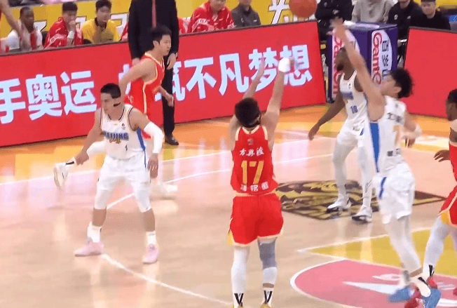 第二节比赛中,赵岩昊连中2记三分,孙铭徽迎着曾凡博三分再中领先北京9分。