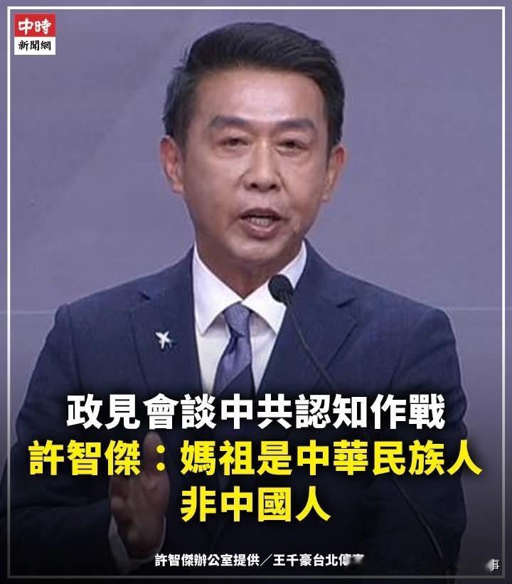 绿营政客:妈祖是中华民族人!不是中国人! 今天台湾省高雄市市长民进党初选举行,在谈到两岸宗教交流时,民进党“立委”许智杰爆出奇葩言论,说妈祖是中华民族人,不是中国人!要求岛内妈祖信众不要被大陆统战! 此言论一出,蓝营网民纷纷嘲讽,前两天你们绿营的前粽桶府发言人谷拉斯还说世界上没有一个族叫中华民族,你们俩要不要笑打一架谁说的对?