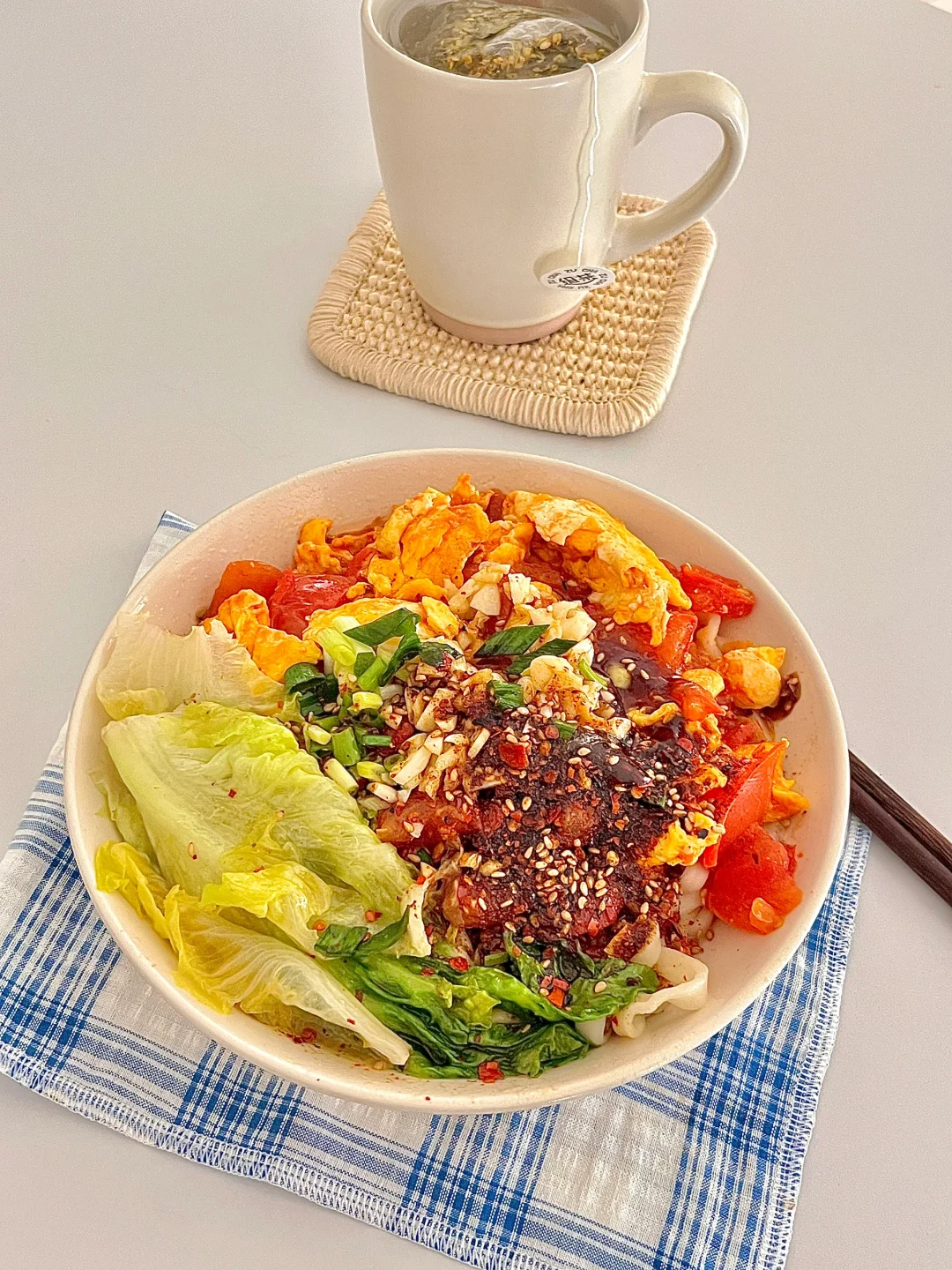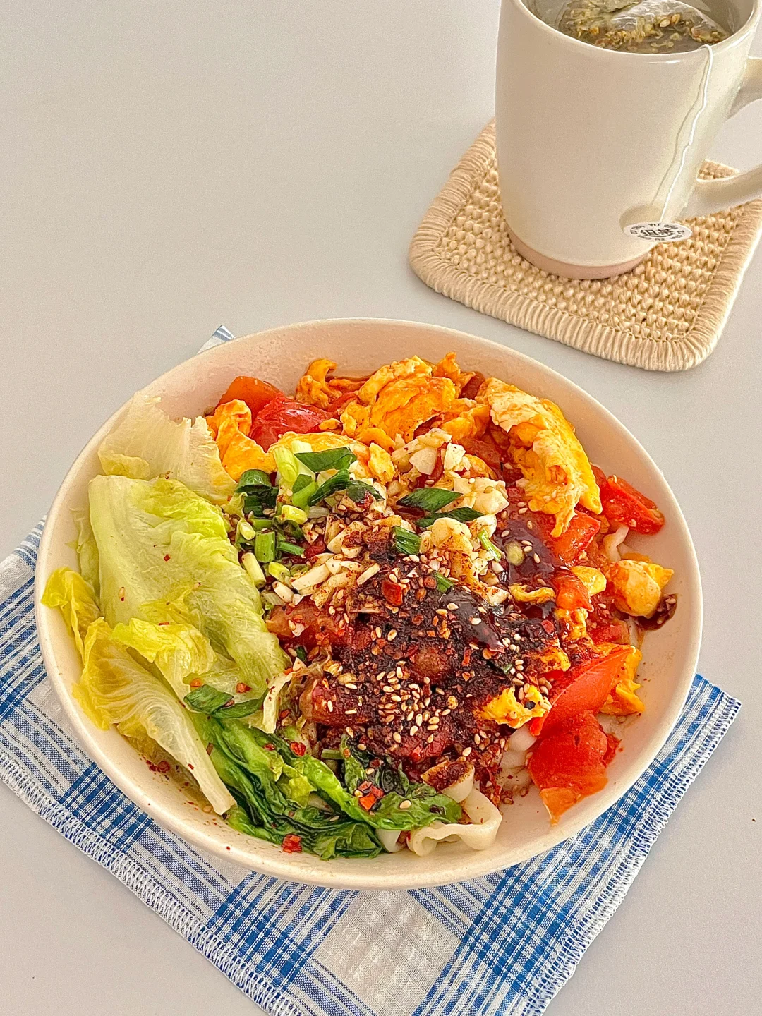 一人食减脂餐🥣 | 番茄鸡蛋油泼面
