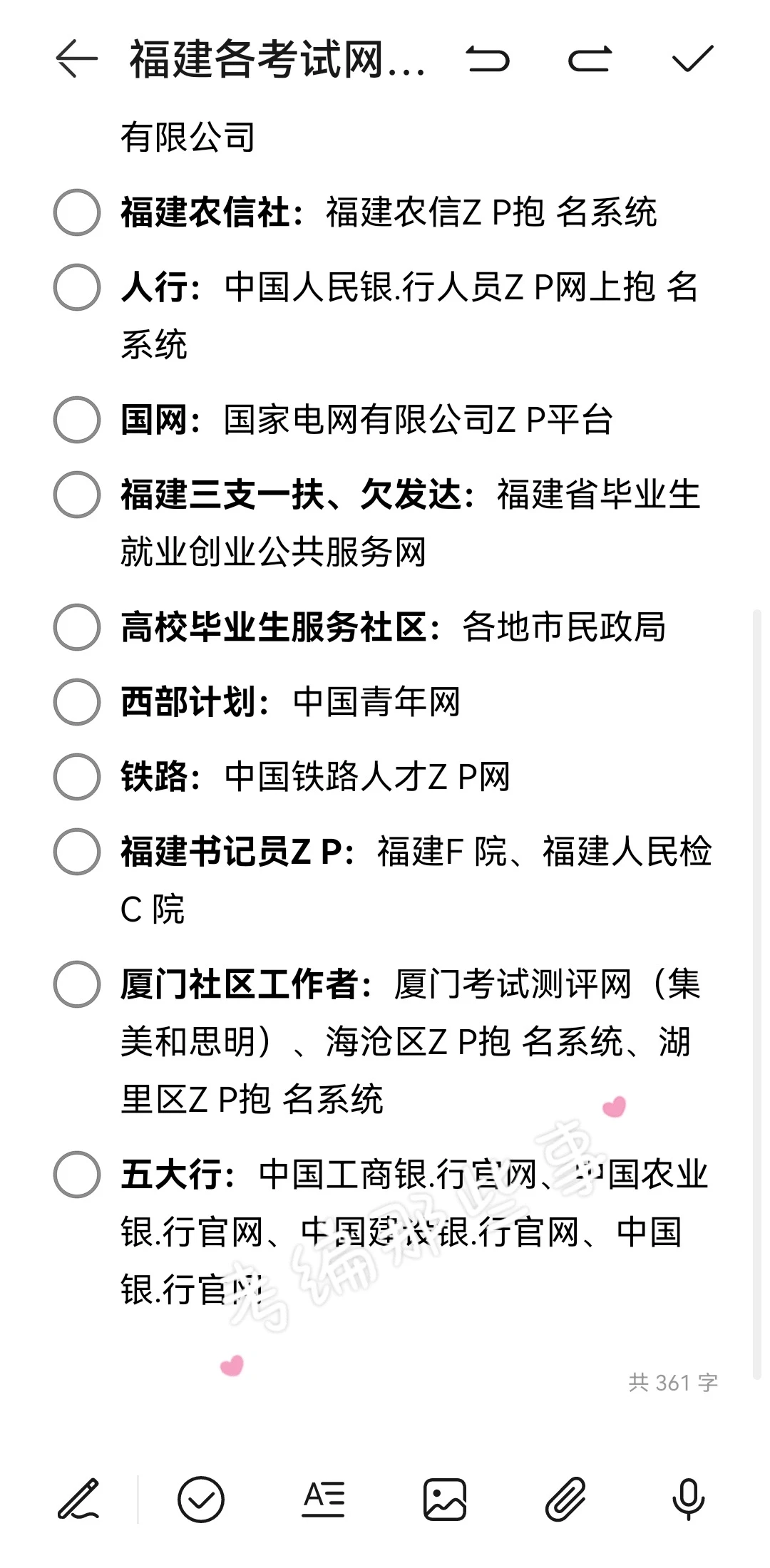 国考:国家.公 务员 局 福建省考:福建省公 务员.考试网 福建选调生:福建省选调生抱 名系统 福建事业单位:厦门事业单位Z P考试管理系统、福建省事业单位公开Z P考试抱 名平台、福建省人社、厦门市卫 生健康事业单位Z P考试系统、各市人社局 军队文职:军队人才网 福建农信社:福建农信 Z P抱 名系统 国网:国家电网有限公司Z P平台 福建三支一扶、欠发达:福建省毕业生就业创业公共服务网 高校毕业生服务社区:各地市民Z局 西部计划:中国青年网 铁路:中国铁路人才Z P网