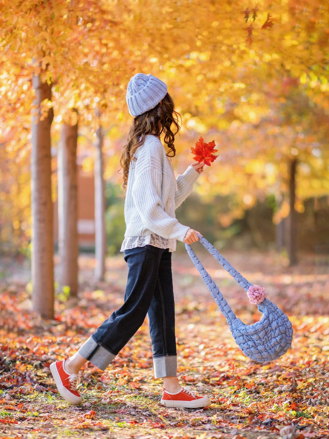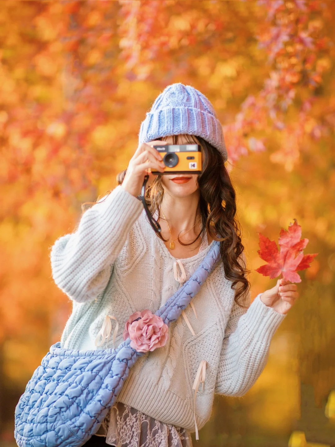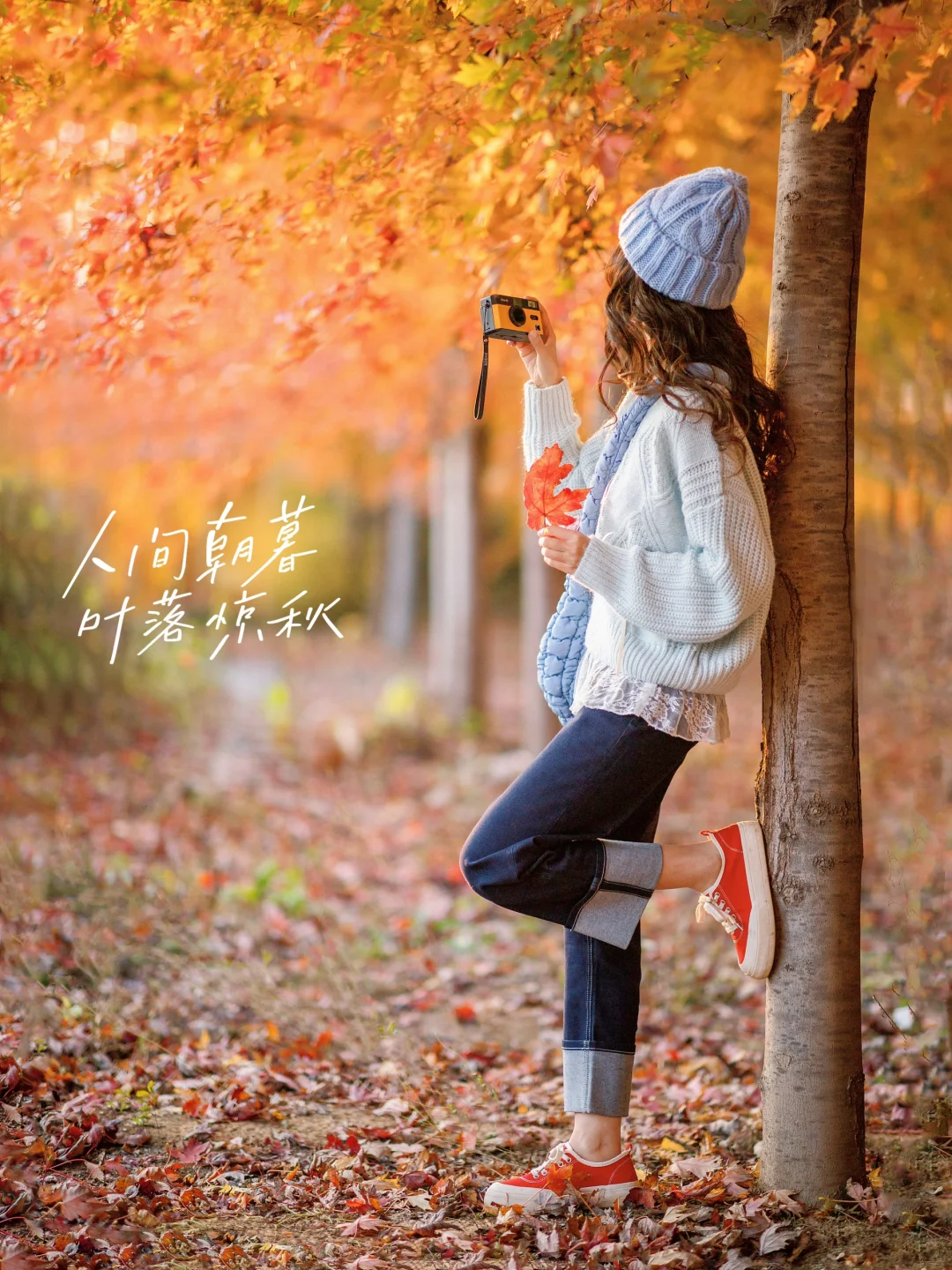 捡起飘落的叶子就是zui好的拍照道具
