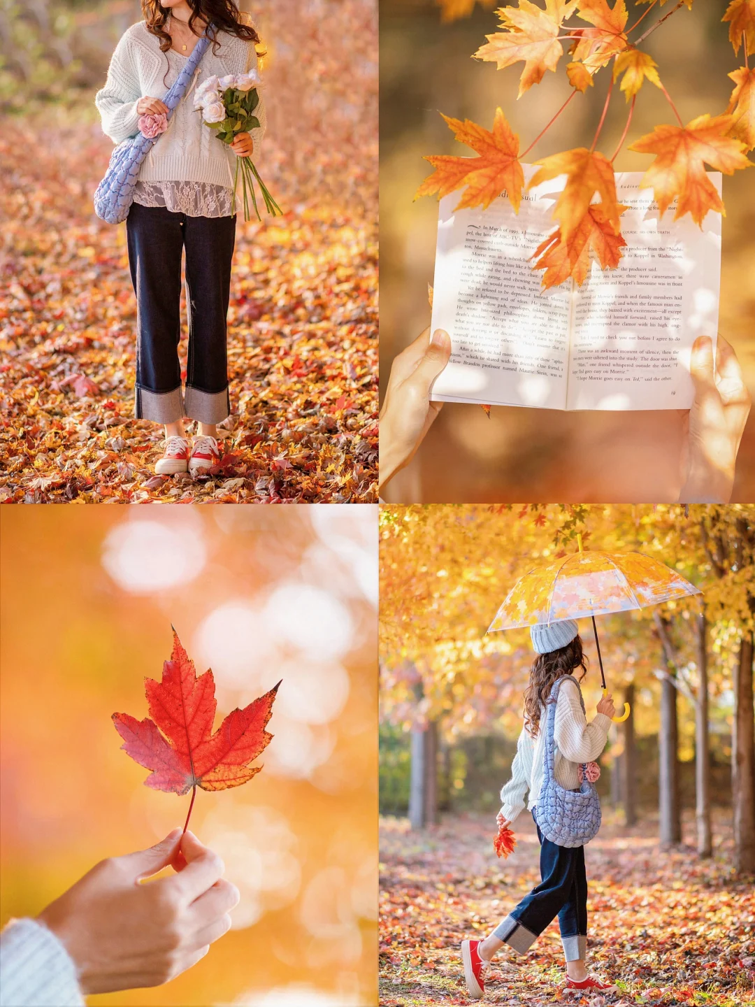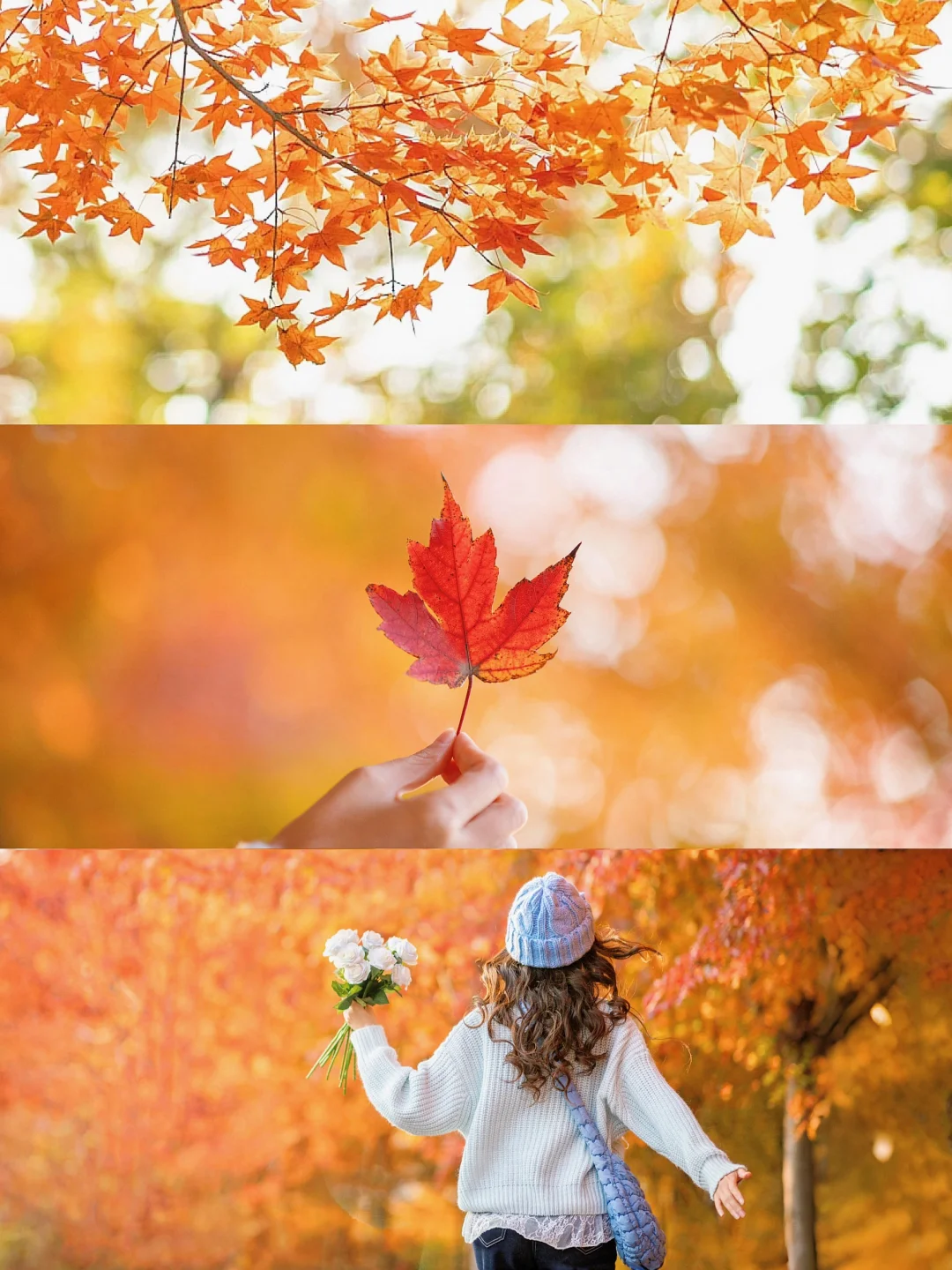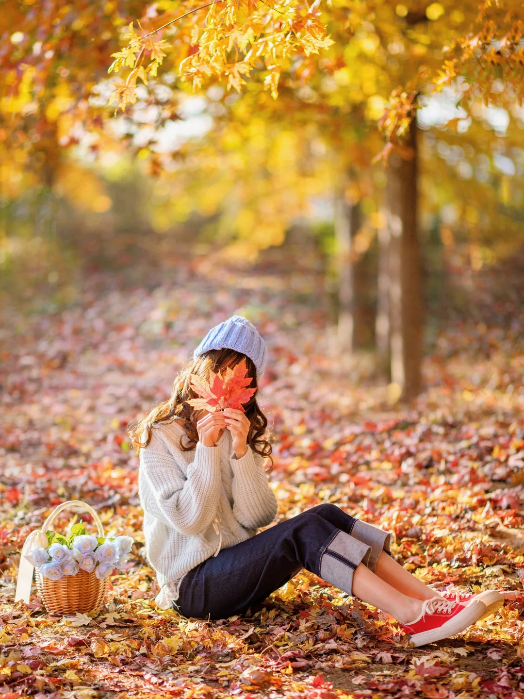 可以用叶子挡脸,洒落叶,拍摄背影等等