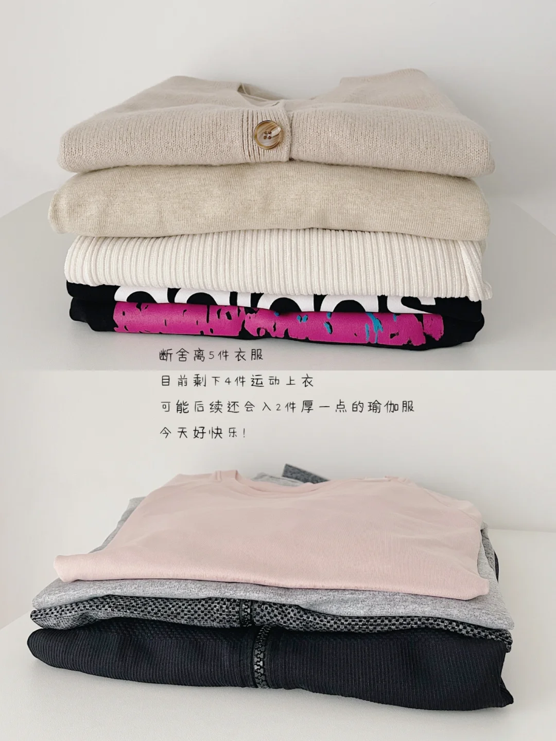 ▪️一大早我就把运动装做了断舍离,还把一些毛衣做了断舍离,本以为我喜欢但上身还是觉得不心动,可能跟去年相比,今年我的物欲少了,衣服多了我就心烦,穿的不舒服我也舍弃,拜拜。