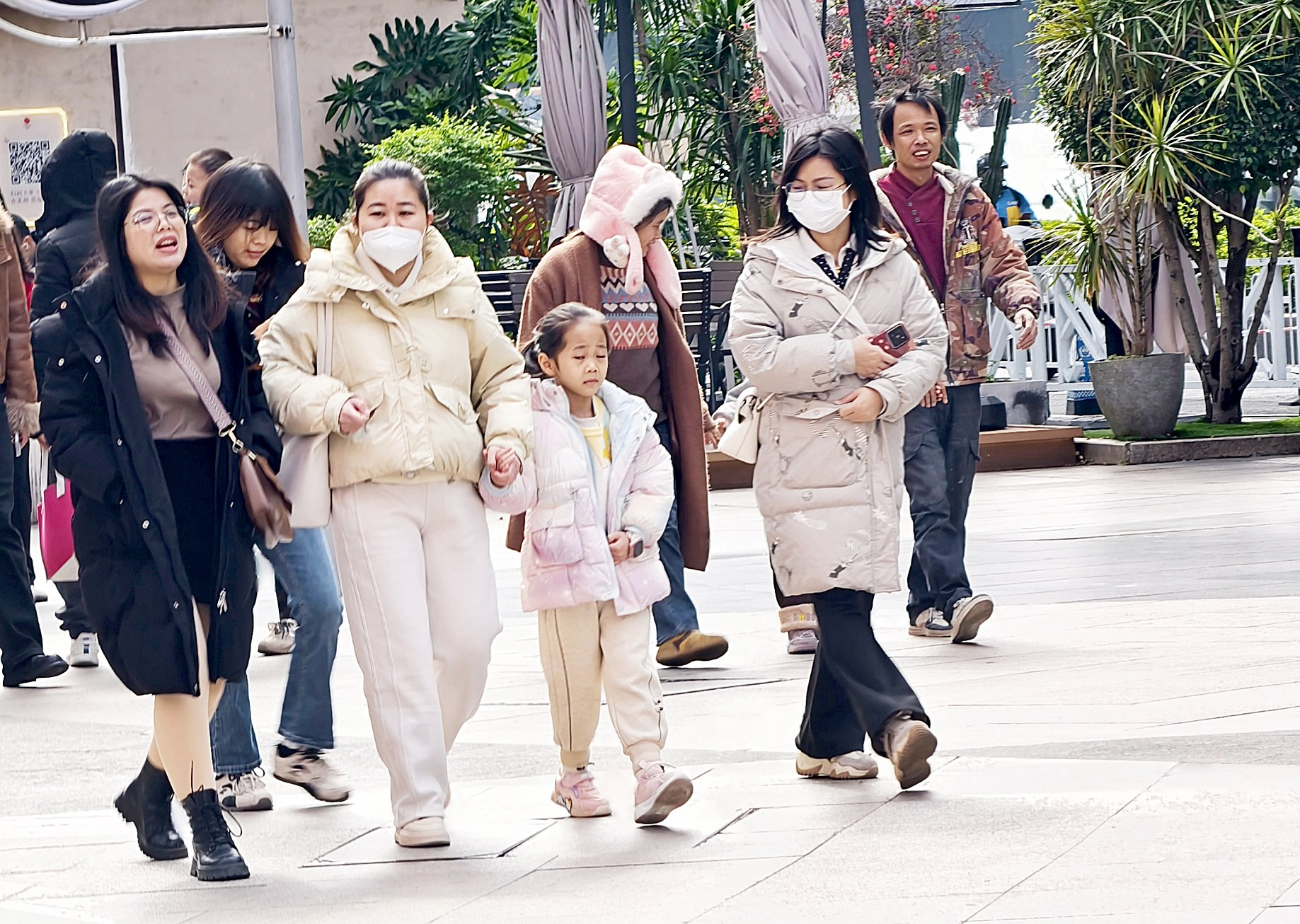 昨日,南宁市民保暖出行。本报记者宋延康摄