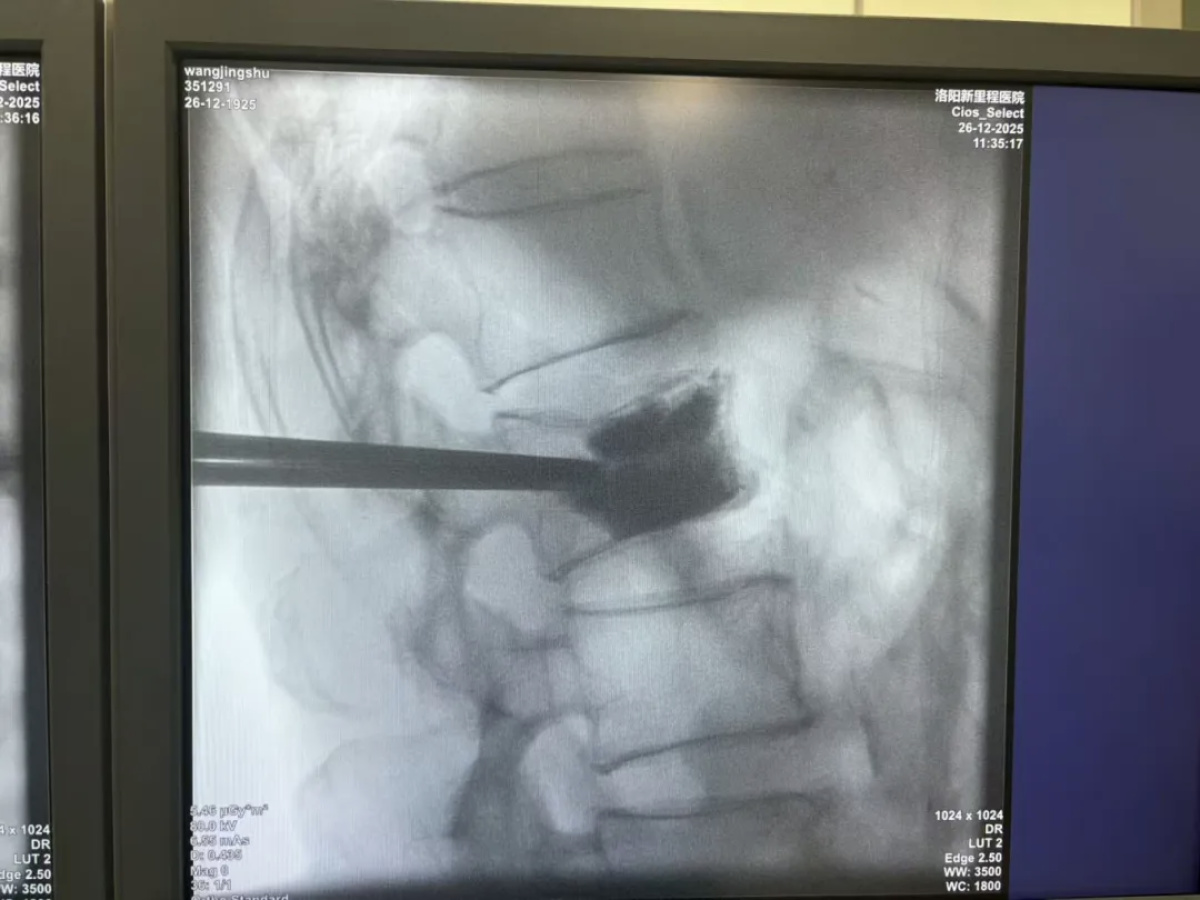 经过周密讨论,团队最终决定实施“L2椎体经皮穿刺球囊扩张+骨水泥成形术”。该术式属于微创手术,仅有穿刺针眼大小伤口,出血极少,对身体干扰小,手术时间短,非常适合高龄、体质弱的患者。