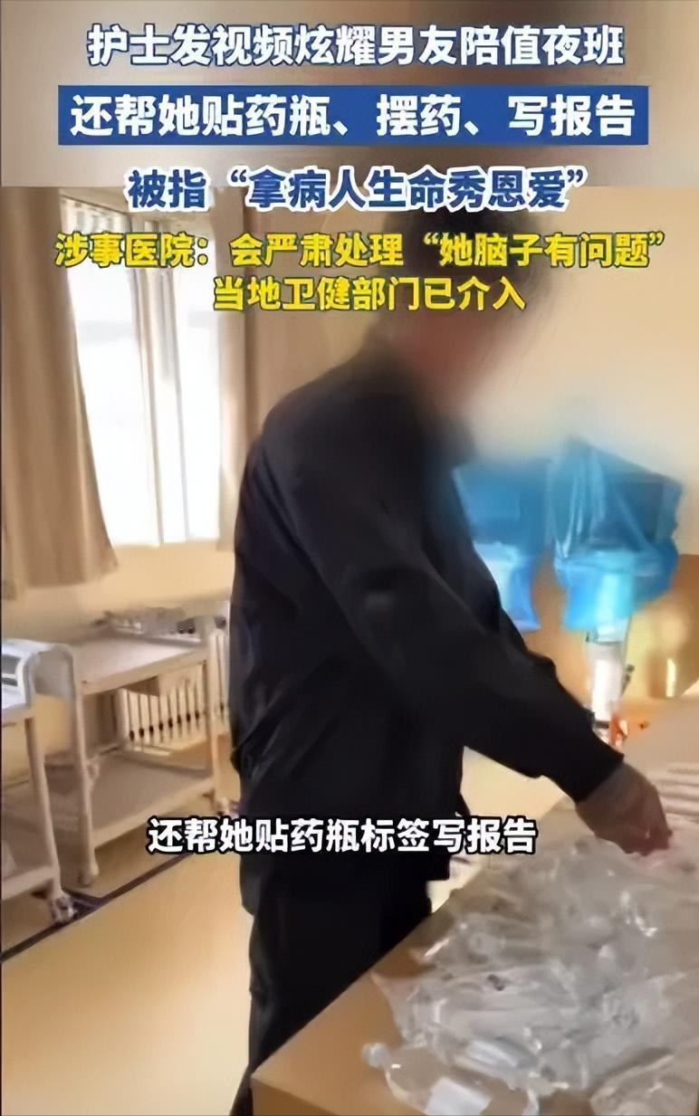 “简直不把病人的生命当回事!”山东青岛,女护士值夜班,带来了男朋友,让他进无菌室帮忙贴药,配药,摆药,还帮忙写医护报告,时间跨越从穿短袖到羽绒服,不知帮了多少忙,医院表示,这女护士脑子有毛病,要严肃处理。 医疗行业的规矩有多严?无菌区外人禁入、配药需专业操作、病历记录容不得半点马虎,这些都是保障患者生命安全的底线。 但最近山东青岛一起护士违规事件,却让无数人惊出一身冷汗——值夜班的女护士竟然把男朋友带进医院,还让对方在无菌区里帮忙配药、贴药瓶标签,甚至代写医护报告,这样的操作从穿短袖的夏天一直持续到穿羽绒服的冬天,到底藏了多少安全隐患? 事情的曝光源于一组社交平台上的视频,虽然现在相关视频和账号已经看不到,但不少网友早已保存下关键画面。视频里,这名女护士不仅大方晒出“夜班搭子”,还特意标注男友是“休班来医院上班,现任听班一职”。 画面中,穿着便服的男子手臂带着纹身,在护士站内毫无顾忌地帮忙搬东西,累了还会给护士揉肩放松,更让人揪心的是,他还径直走进了标注着无菌区的配药室。 在专业要求极高的配药室里,男子完全没有穿专业防护服,也没有进行任何消毒流程,就直接上手帮忙配药、摆放药品,还拿着药瓶标签一张张粘贴。 要知道,配药环节有严格的“三查七对”要求,每一步都要核对患者姓名、药名、剂量等关键信息,哪怕错一个字、差一毫升剂量,都可能给患者带来致命风险。 而这名毫无医疗资质的男子,就这样随意触碰着即将输入患者体内的药品,全程没有任何专业人员监督提醒。 除了配药贴标签,男子还在护士台拿起笔,帮忙书写医护报告。医护报告是患者诊疗过程的重要记录,不仅需要专业的医学知识,更要求记录准确、规范,直接关系到后续诊疗方案的制定和医疗纠纷的认定, 可这些本应是专业医护人员完成的工作,却被一名外人随意代笔,其中可能存在的记录偏差、信息错误,想想都让人不寒而栗。 从网友整理的信息来看,这并非一次偶然的违规。有熟悉情况的人透露,男子来医院“帮忙”的时间跨度很大,从大家穿短袖的盛夏,一直持续到穿羽绒服的寒冬,期间不知道参与了多少次配药、多少份报告的书写。 医院内部人员在得知此事后,也直言“她脑子有问题,这不是小事,我们会严肃处理”,言语间满是无奈和重视。 随着舆论发酵,当地卫健部门第一时间介入调查。很快官方通报出炉,确认涉事护士为当地某医院职工,在值班期间违反工作纪律,擅自将男朋友带入病房区并默许其协助开展专业工作。 目前医院已经对该护士作出停职处理,卫生健康综合监督执法部门也在进一步调查,后续会依法依规对涉事医院和相关人员严肃追责。 可能有人不理解,不就是“帮个忙”吗?为啥反应这么大?其实医院的无菌区之所以被称为“生命禁区”,就是因为任何一点疏忽都可能引发严重后果。 有数据显示,外来人员进入无菌区后,区域内微生物检测超标率会高达83%,很容易导致患者出现交叉感染。 而配药、病历记录这些工作,更是容不得半点非专业操作,此前就有医院因为药品标签贴错、病历记录不实引发医疗纠纷,最终赔偿患者数十万元。 按照医疗机构的相关规定,无菌区、配药室等区域仅限合格的医护人员进入,外来人员一律禁止入内,这不仅是对患者负责,也是医疗行业的基本准则。 而这名女护士的行为,不仅无视了行业规范,更把患者的生命安全当成了可有可无的小事,让本应严谨专业的医疗环境,变成了随意进出的私人场所。 目前,相关调查还在继续,后续的处理结果也备受关注。但这件事更值得警惕的是,医疗安全的防线,从来都容不得半点松懈,每一个违规操作的背后,都可能隐藏着无法挽回的悲剧。 对此,你们有什么看法,欢迎评论留言~