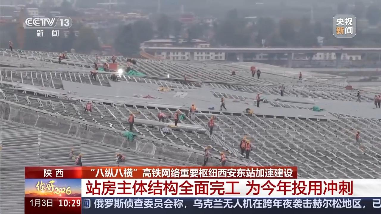 元旦假期,在各地重大工程的建设现场,许多建设者们仍坚守岗位。作为国家“八纵八横”高铁网络中的重要枢纽,陕西西安东站正在加速建设。目前,这座西北地区最大的高铁站房主体结构全面完工,这个元旦假期,工程建设依然在全速推进。