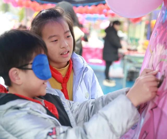仪式结束后,古韵游园活动开启,各班传统游戏摊位前迅速排起长队。同学们满怀期待穿梭其间,校园满是欢声笑语。一年级投壶摊位,小同学在老师指导下专注尝试,成功入壶便欢呼;隔壁陀螺摊位,高年级同学熟练操控,引得喝彩。滚铁环、跳房子等各类游戏摊位人气爆棚,同学们各展身手,乐此不疲;套圈、锤丸等项目前,大家踊跃参与,成功后收获满满成就感,老师及时盖章鼓励。此外,飞花令、写福字、剪纸等传统赏玩摊位备受喜爱,同学们动手动脑感受传统魅力,成功后手持盖有印章的体验券满心自豪。随着参与项目增多,同学们的游园卡渐渐盖满鲜红印章。