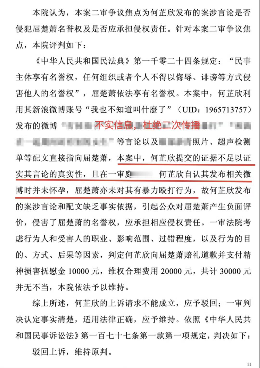 屈楚萧方公开胜诉判决书屈楚萧方公开了二审胜诉判决书,一直未公开的原因是考虑到何女