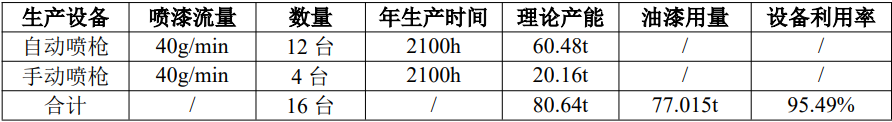 项目调漆、喷漆烘干设备产能核算表