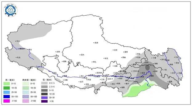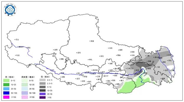 1月4日至7日,山南南部、林芝东部和南部阴天有小雪(雨),部分高海拔地方有中雪;昌都北部、阿里南部、那曲东部、林芝中部和西部多云间阴天,部分地方有阵雪(雨)(图1);其他地方少云间多云。