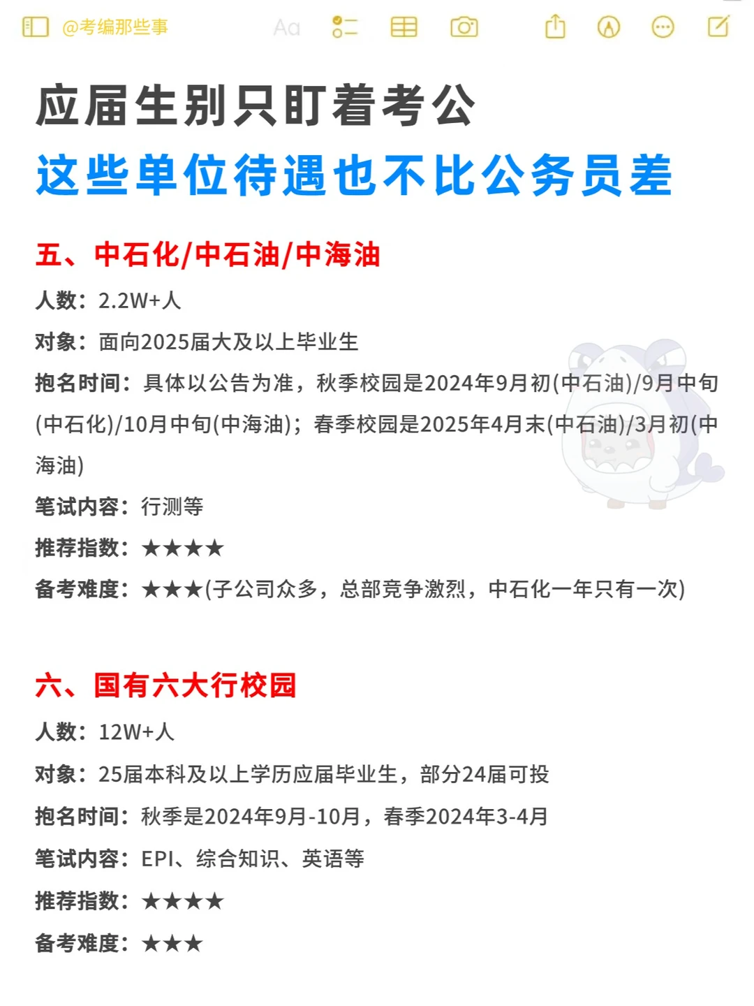 抱名时间:秋季校园是2024年9月初(中石油)/9月中旬(中石化)/10月中旬(中海油);春季校园是2025年4月末(中石油)/3月初(中海油)
