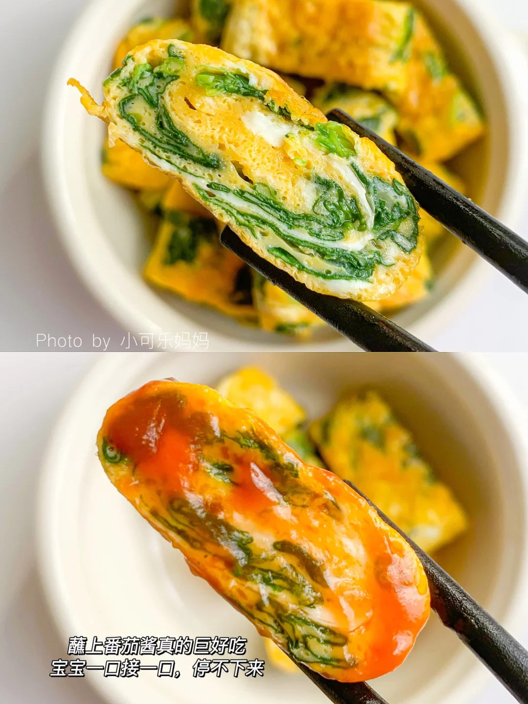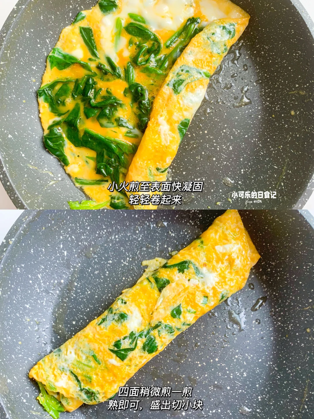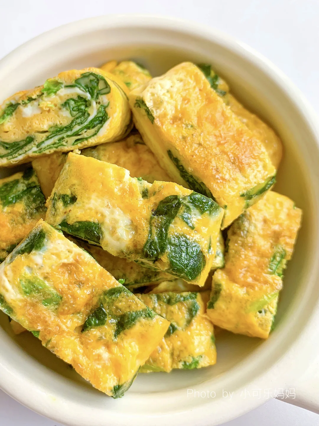 春天是宝宝长高的黄金时期,多给宝宝安排这个菠菜鸡蛋卷,补钙补铁,营养又好吃,蘸点番茄酱,可乐一口接一口,停不下来。做法也很简单,十分钟搞定 - 🌟食材: 菠菜 鸡蛋3个 . 🌟做法: 1⃣️菠菜焯水沥干水分切小段 2⃣️碗里打入鸡蛋打散,加入菠菜和少许盐拌均匀 3⃣️锅里刷油,倒入蛋液小火煎至快凝固的时候,卷起来,煎至熟即可 做的时候可以多做些妈妈们也可以一起吃哦,无菌可生食鸡蛋真的太喜欢了,每次都跟宝宝一起当早餐