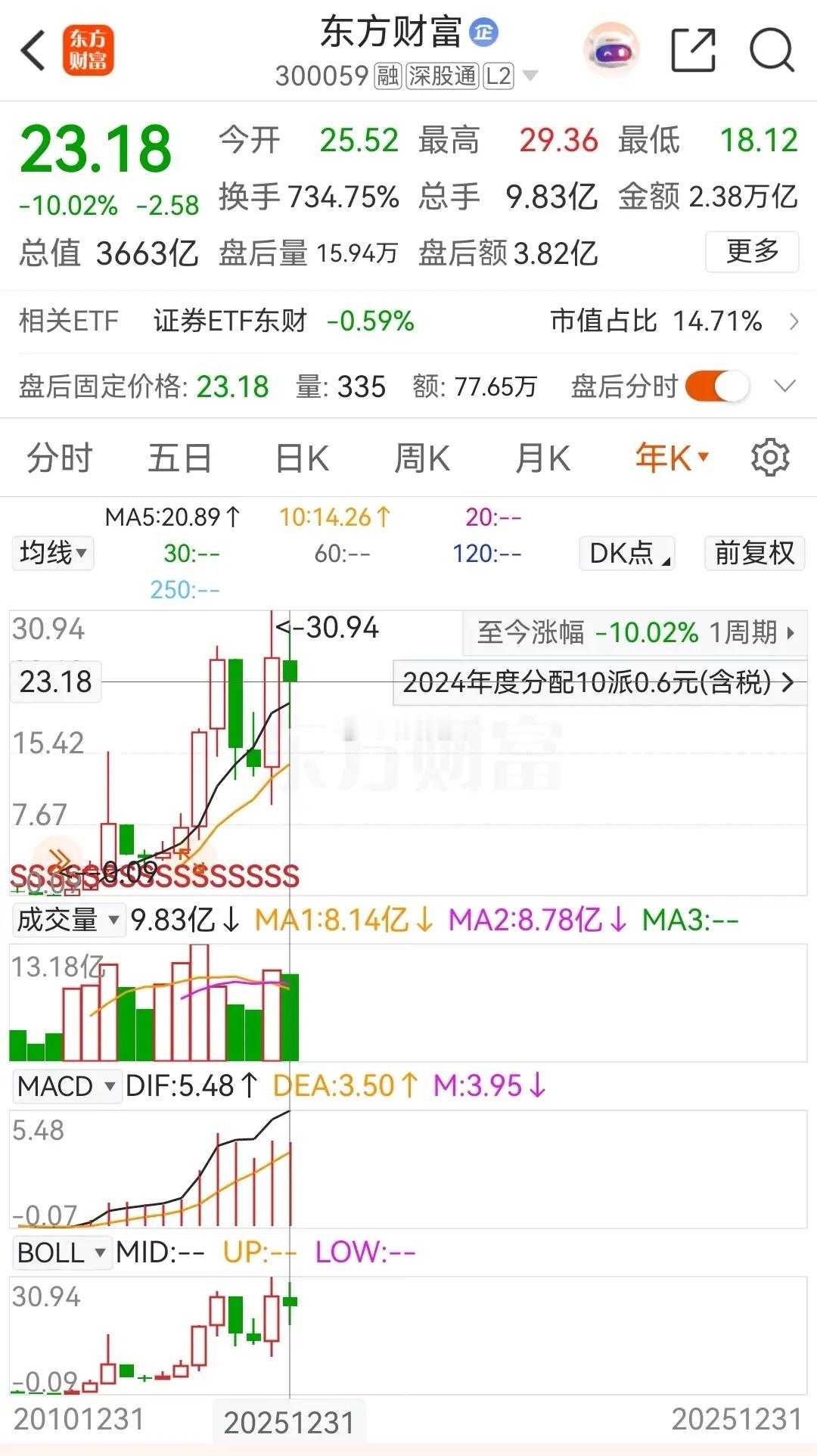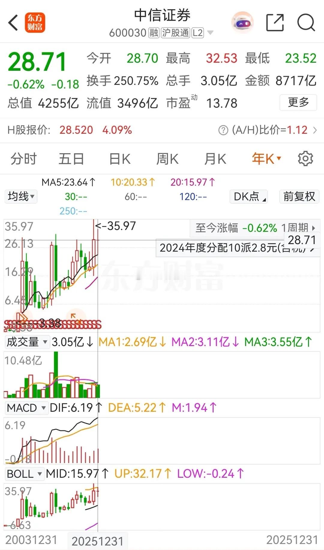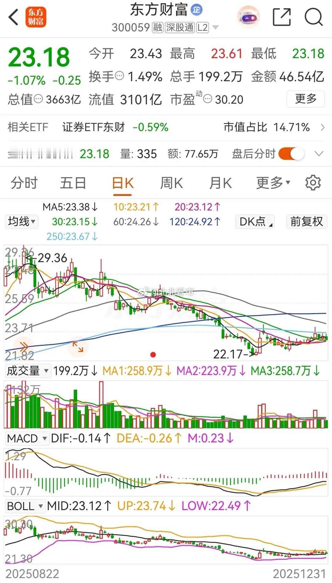 东方财富和中信证券,前者被称之为券茅,后者则是号称券商一哥,但是二者在2025年的走势却不尽人意。东方财富在2025年的年涨幅为-10.02%,中信证券的年线则是收出了一颗十字星,年涨幅为-0.62%。截止当前为止,东方财富的报价为23.18元/股,总市值为3663亿元;中信证券的报价为 28.71元/股,总市值为4255亿元。下面简单回顾一下二者近期的走势情况!东方财富在年底收官之日平开冲高后走低,最终收阴,当天被主力资金净卖出了5.4397亿元,目前已是连续三天被主力净卖出了。从日线走势上看,目前股价收到年线压制,在其下方整理;周线同样也是横盘整理,而12月份的月线则是收出了一颗阴十字星,目前是连续四个月收阴了,至于年线,文中开头就提到了,就是一根中阴线。中信证券在年底收官之日同样也是低开冲高后走低,最终收出了一颗阴十字星线,目前是连续三天下跌了。在资金流向上,当天被主力资金小幅净卖出了约0.1890亿元,终结了连续四天净买入的态势。从日线级别走势上看,目前股价被半年线压制,多次突破未果;周线则是受压于20周线,12月份的月线则是收出了一根中阳线,终结了连续三个月下跌的态势。整体看来,在技术走势上一哥是强于券茅的!对于二者的近期走势,很明显能看到业绩与股价显著背离。二者的业绩都是高增长:2025年三季度,东方财富净利润同比暴涨77.74%,中信证券净利润增长51.54%,均创历史新高;中信证券总资产突破两万亿元,成为国内首家跨入该规模的券商,而东财净利润增速更快但营收规模仅为中信的20%。而二者的股价则是比较弱势,详细情况上文中已经提到了,这里就不再赘述了。投资者策略选择,对于激进的投资者可以考虑关注东财23~26元区间内的波段机会,但需放量突破25元压力位确认信号;稳健派投资者可以考虑更倾向中信证券在28~32元区间内的布局,主要原因是看重其低估值(PB 1.29倍,处于历史18%分位)和政策托底预期。