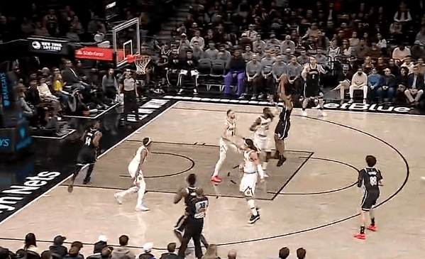 比赛的第四节,托马斯反击急停中投打进,篮网领先掘金到20分分差。