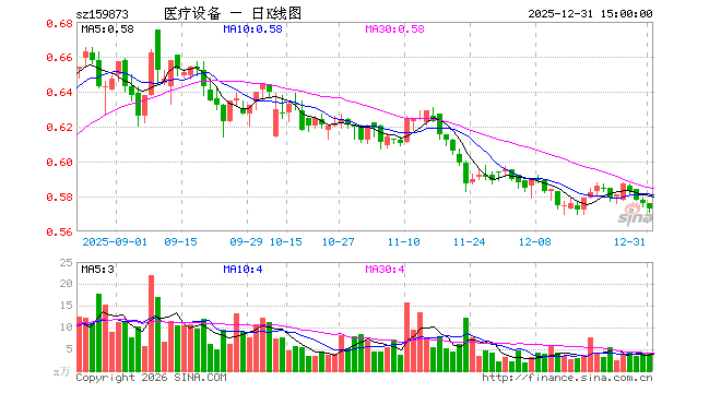 12月31日,医疗设备ETF(159873)跌0.52%,成交额223.14万元。当日份额增加200.00万份,最新份额为1.91亿份,近20个交易日份额增加200.00万份。最新资产净值计算值为1.09亿元。