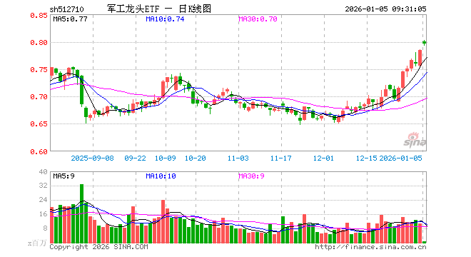 军工龙头ETF(512710)业绩比较基准为中证军工龙头指数收益率,管理人为富国基金管理有限公司,基金经理为牛志冬、王乐乐,成立(2019-07-23)以来回报为56.29%,近一个月回报为17.59%。
