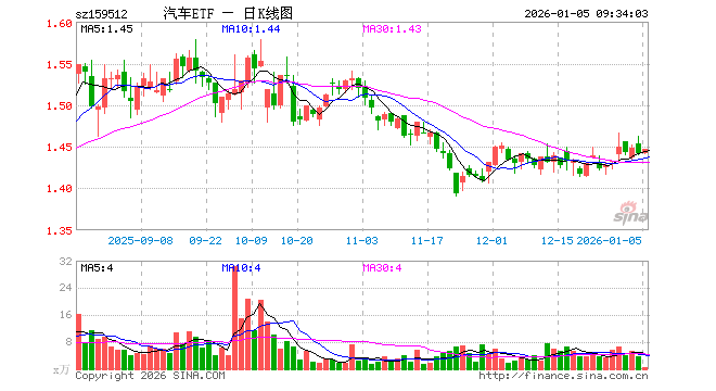 1月5日,汽车ETF(159512)开盘涨0.00%,报1.442元。汽车ETF(159512)重仓股方面,赛力斯开盘跌0.67%,江淮汽车涨0.00%,比亚迪涨0.70%,上汽集团涨0.20%,长安汽车涨0.00%,宇通客车涨0.58%,长城汽车跌0.13%,北汽蓝谷涨0.00%,广汽集团跌0.25%,福田汽车涨0.00%。