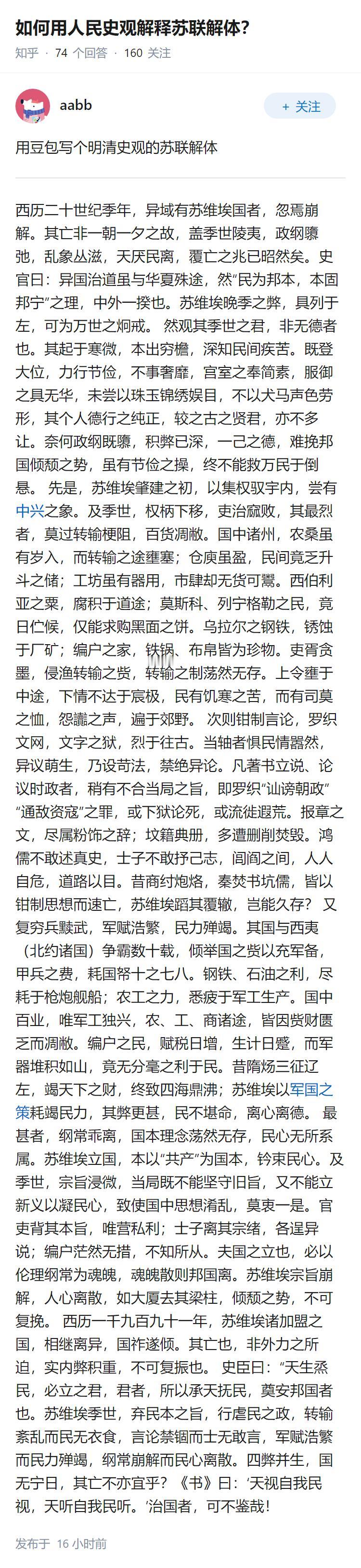 如何用人民史观解释苏联解体?