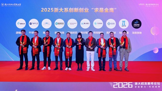 发布会上还揭晓了2025浙大系创新创业“求是金鹰”入选名单,逻辑比特、千寻智能、地卫二、拓烯科技、进迭时空、微分智飞、穹彻智能、青昀新材、知合计算、深度原理等10家浙大系创业公司入选,涵盖人工智能、量子计算、集成电路、航空航天、具身智能、新材料等多个前沿科技领域。