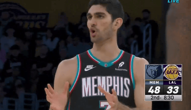 第二节比赛中,灰熊连续防守反击打成,第二节48-33再次打停湖人。