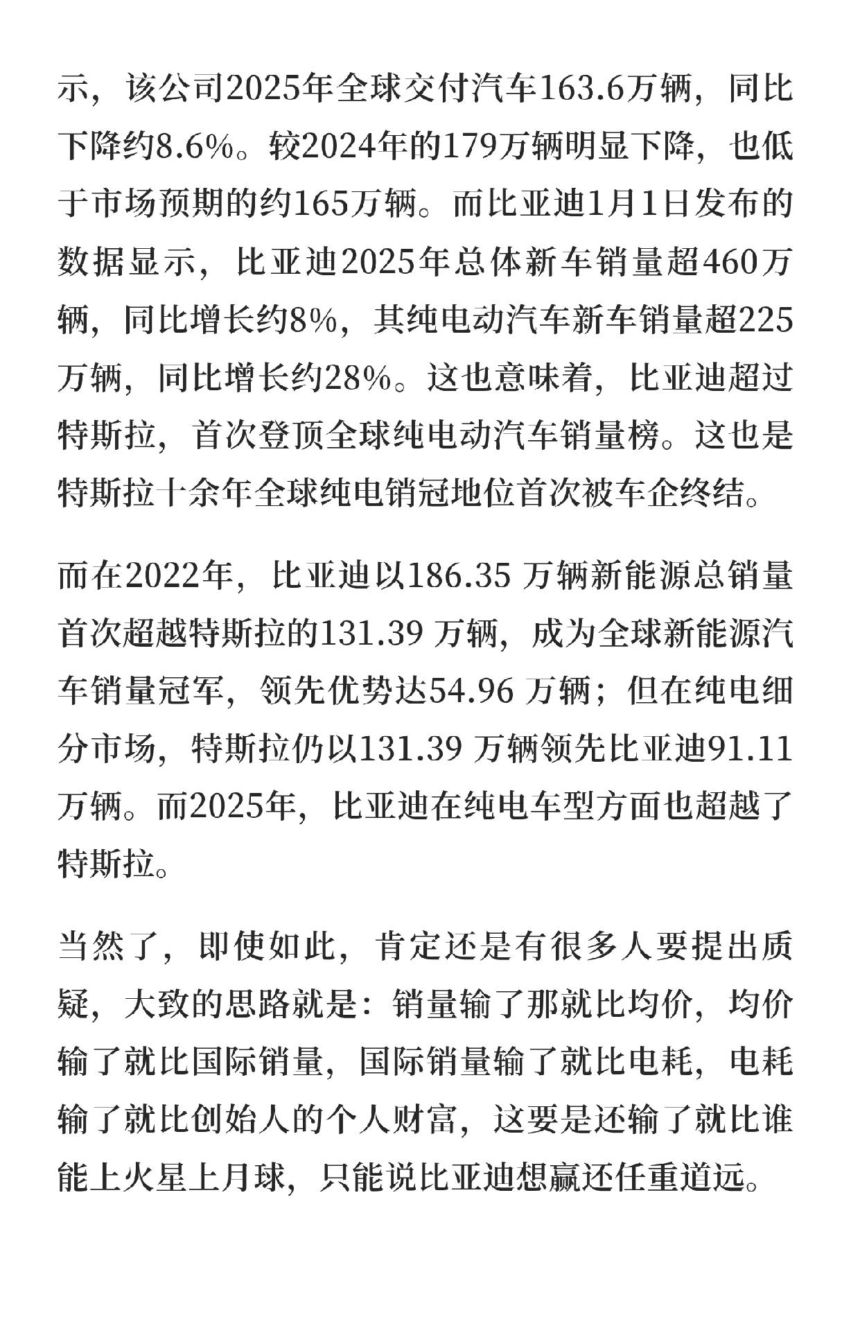 全球电车销量,特斯拉也输给比亚迪了。 国货之光唯有比亚迪,比亚迪让国产新能源