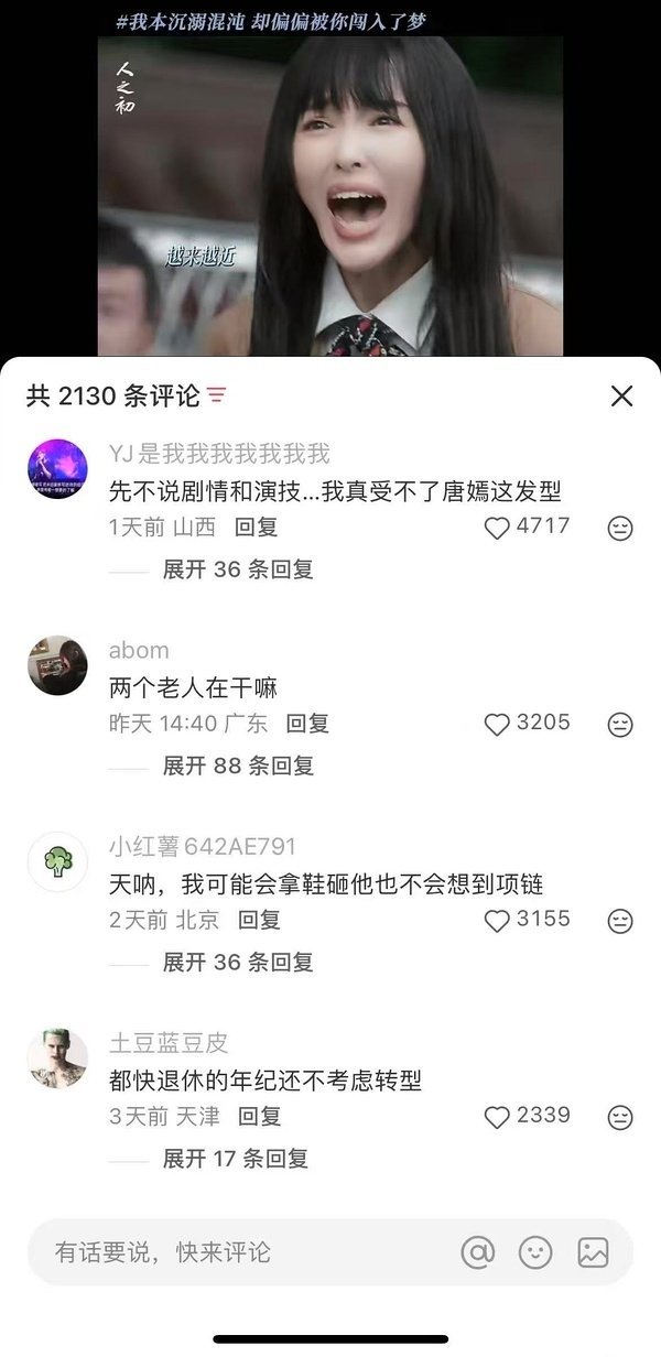 薯人:唐嫣你本可以体面的老去,都快退休的年纪还不考虑转型。在《繁花》回暖的观众缘,在《念无双》和《人之初》播完后又全部还回去了。