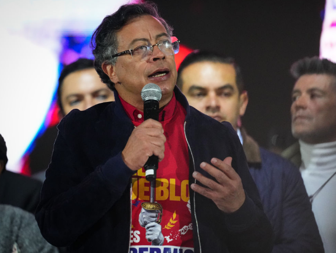 10月24日,哥伦比亚总统佩特罗在首都波哥大的玻利瓦尔广场发表讲话。新华社发(安德烈斯·莫雷诺摄)