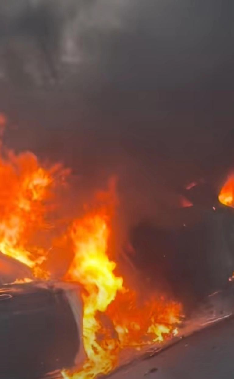 三车追尾燃起大火,车辆被烧成空壳,所幸没有人员伤亡。今天(1月5日),有网友发布视频称,湖北荆州复兴大道发生一起三车追尾事故,事故现场燃起大火,三辆车尽数被大火吞噬。据悉,事故发生在1月5日早7点左右。视频显示,三车追尾后很快便燃起大火,现场浓烟滚滚,火势猛烈。其中最后一辆车中,还有车主冒火从车箱取出物品搬至路旁。据目击者称,当时路面雾气较大,车祸或与此相关。事发后,当地相关部门已紧急赶赴现场进行处置。事故没有造成人员伤亡。事故具体原因有待官方通报。热点 湖北荆州今早发生一起三车追尾事故 州复兴大道三车追尾事故三车被烧毁