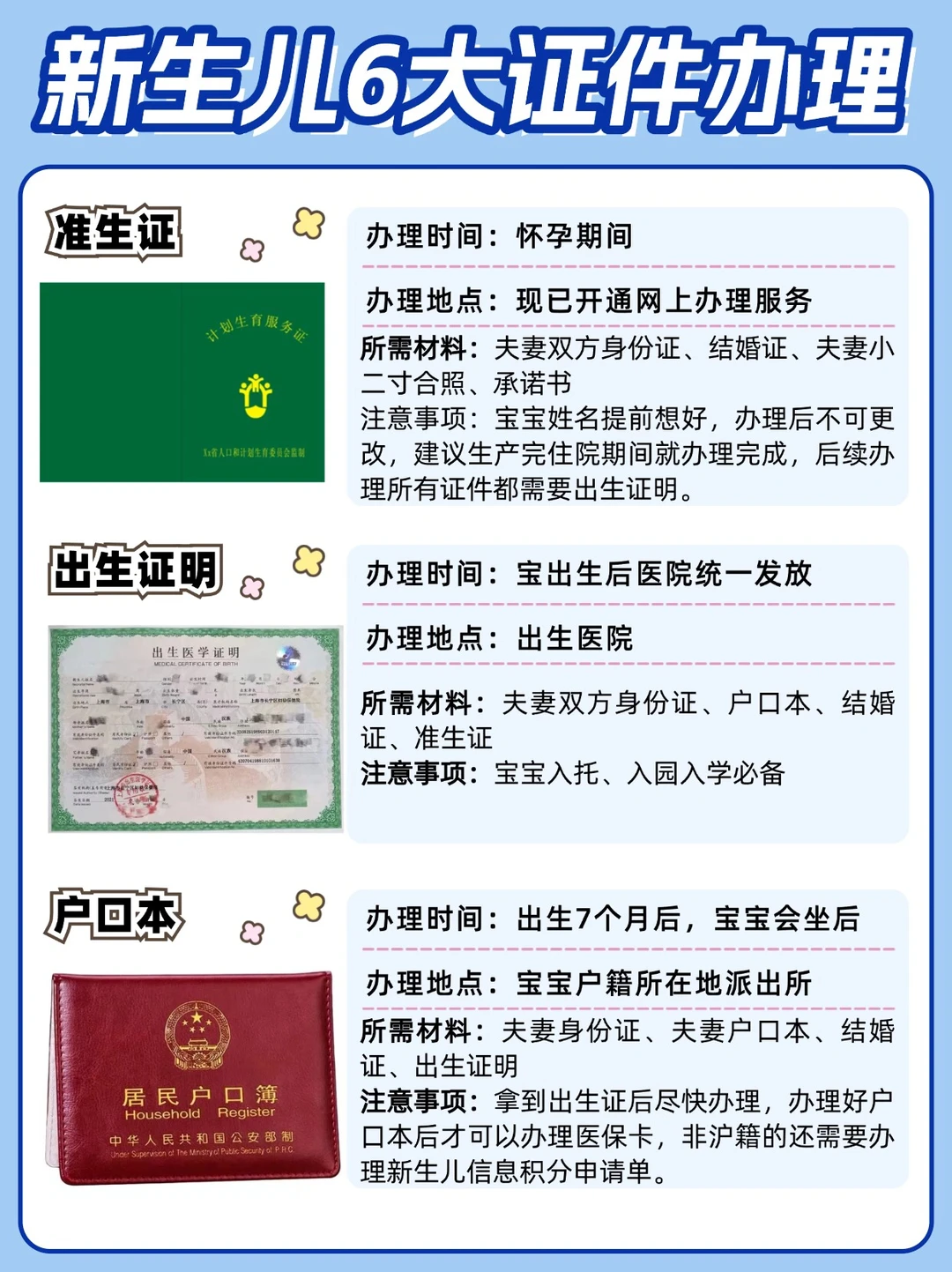 整理了新生儿6大证件办理的全干货,新手爸妈码住不踩坑👇